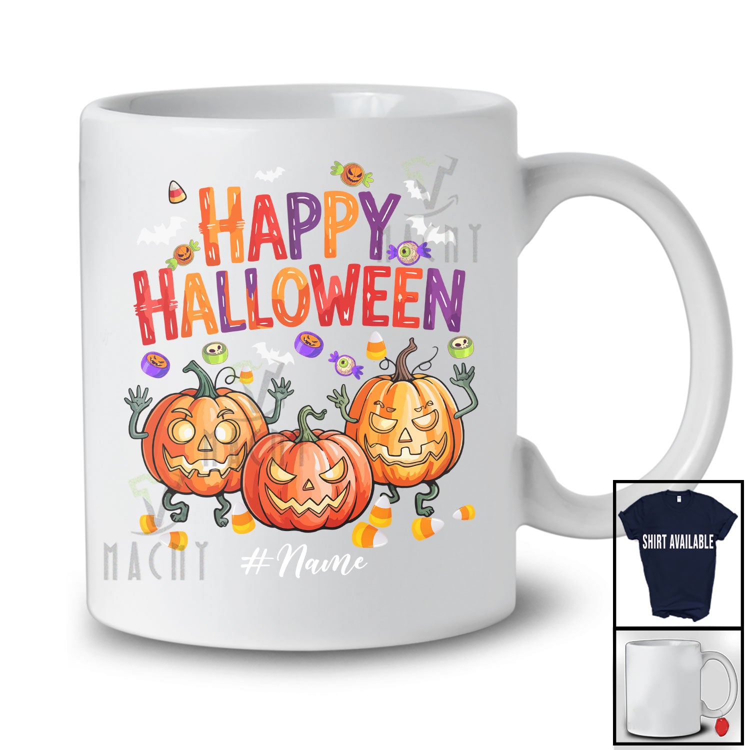 • The Personalized Custom Name Happy Halloween; Horror Halloween Costume Three Carved Pumpkins T-Shirt is the product you didn't think you need, but once you have it, something you won't want to live without.