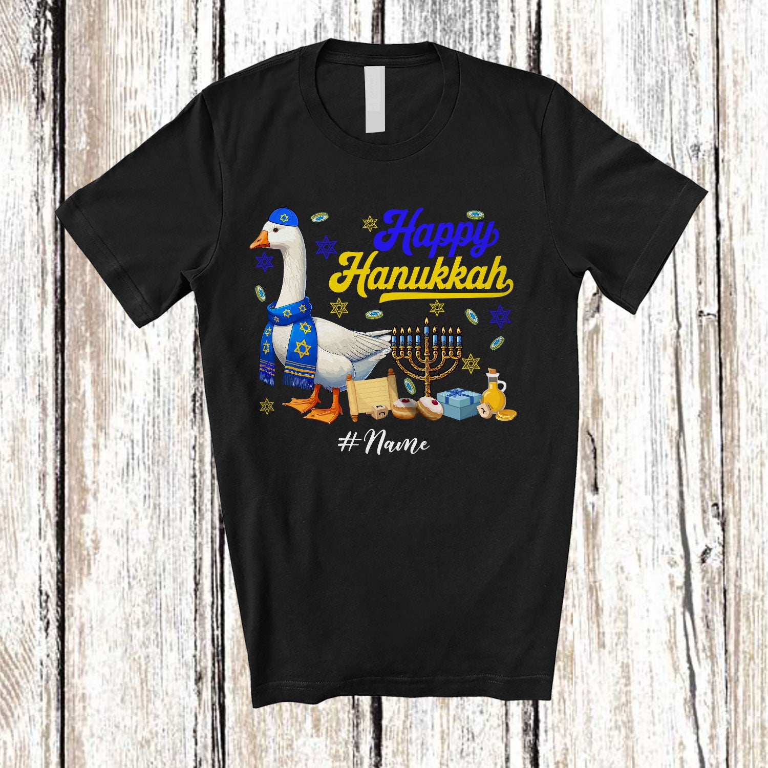 Personalized Custom Name Happy Hanukkah; Amusing Chanukah Goose With Menorah Animal T-Shirt