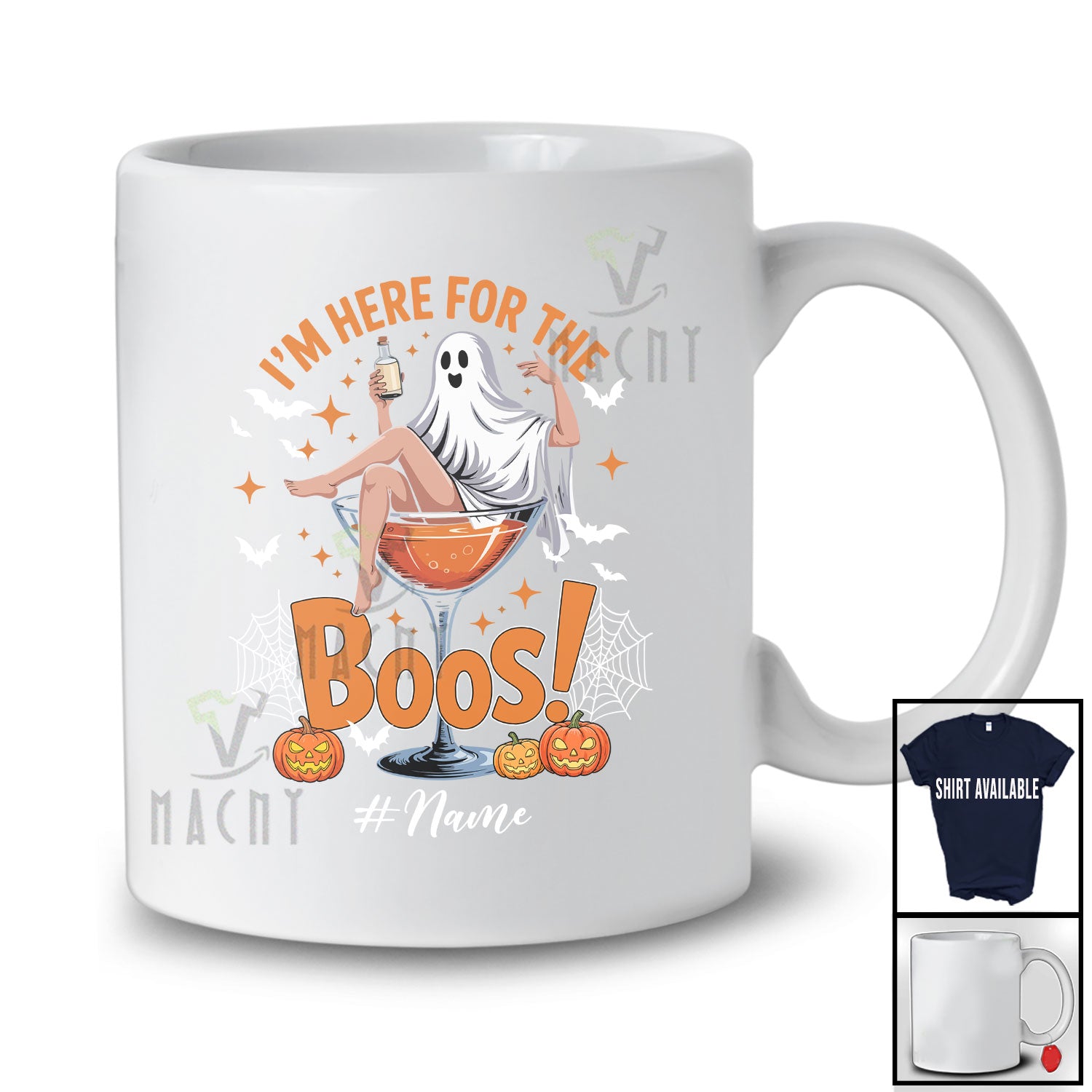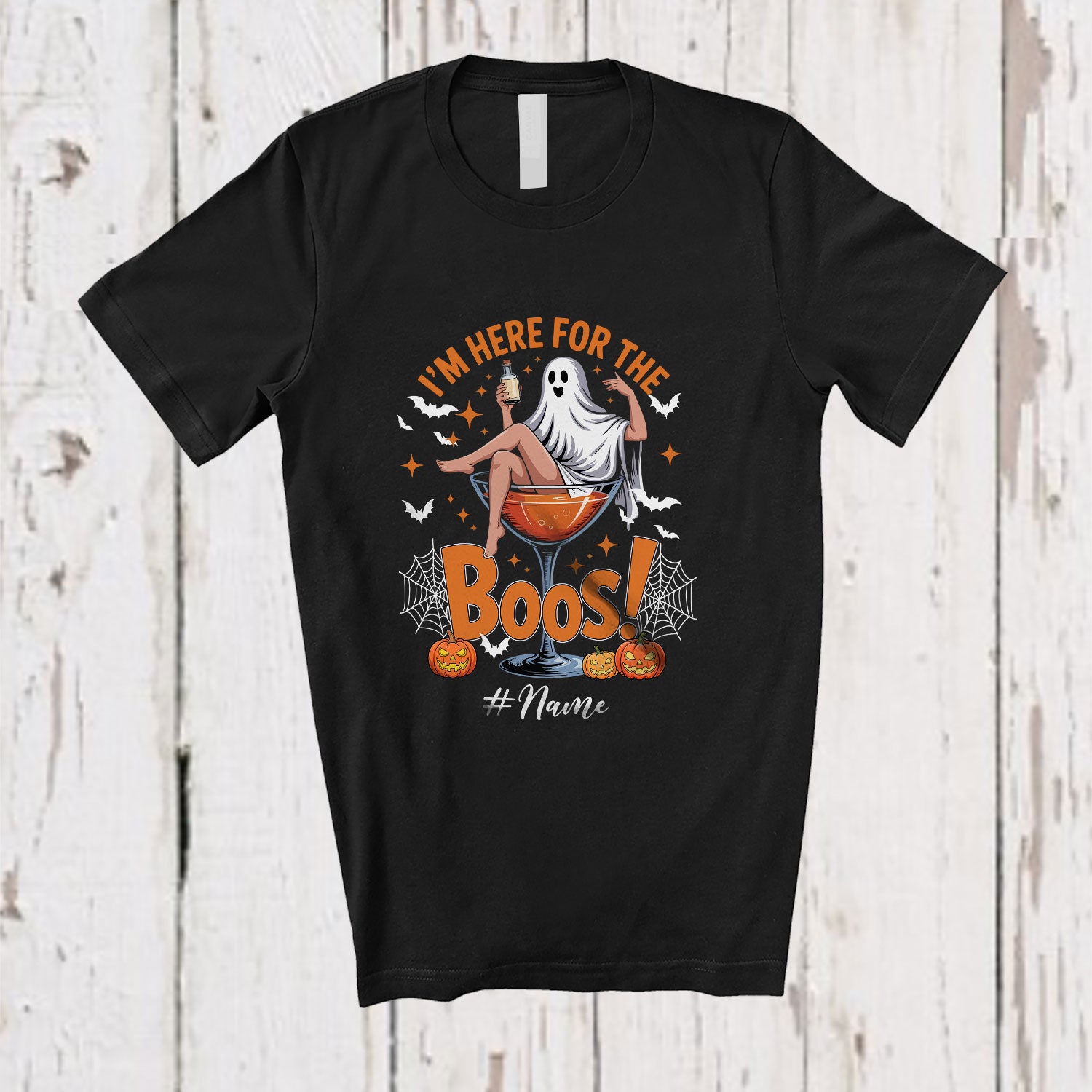 Personalized Custom Name Here For The Boos; Happy Halloween Women On Cocktail; Drinking T-Shirt. This cotton t-shirt is a durable staple product with a classic fit. One of the most popular items, it has a relaxed style made for everyday and casual wear.