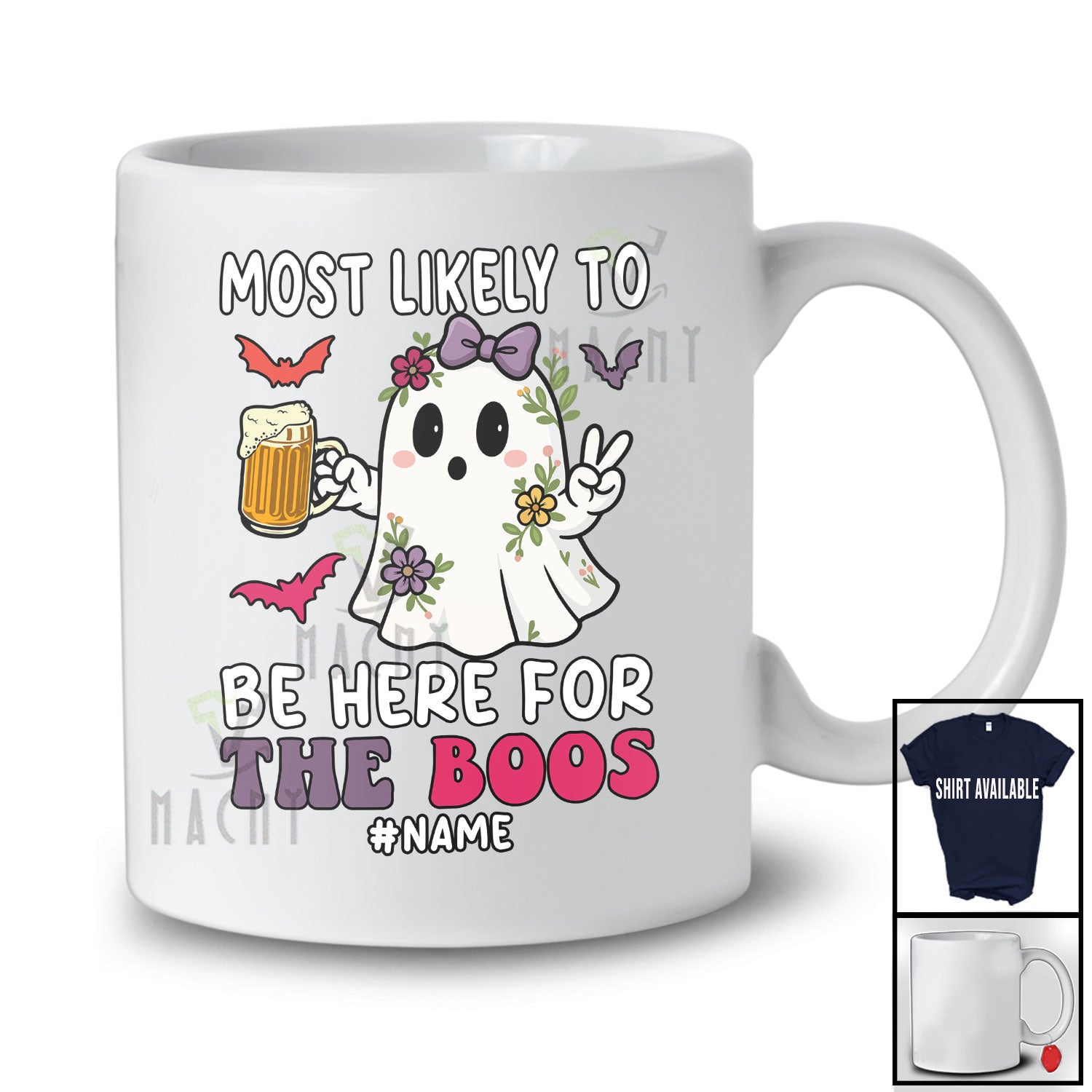 • Personalized Custom Name Here For The Boos; Lovely Halloween Ghost Drinking Beer; Flowers T-Shirt. This cotton t-shirt is a durable staple product with a classic fit. One of the most popular items, it has a relaxed style made for everyday and casual wear.