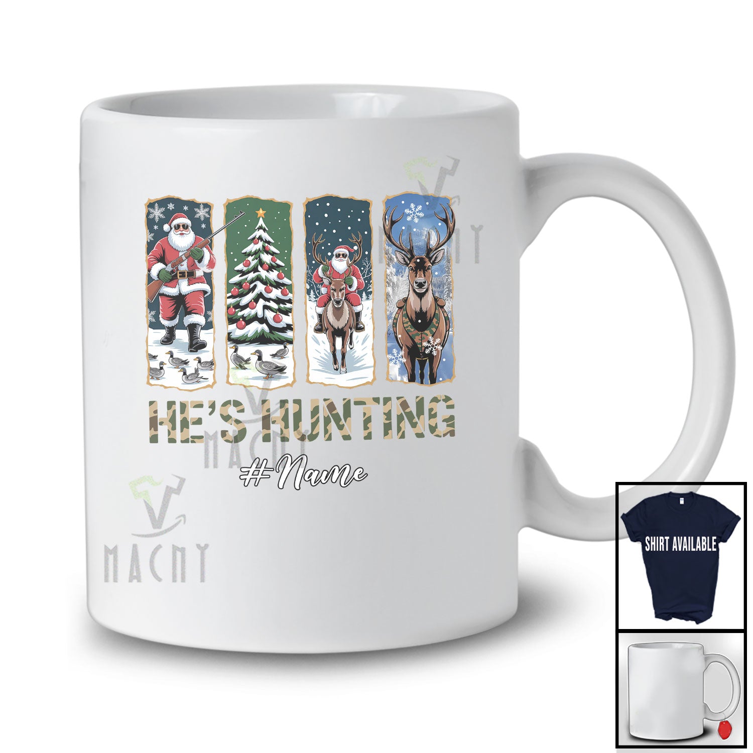 new MacnyStore - Personalized Custom Name He's Hunting; Humorous Christmas Santa Hunting Reindeer; Hunter T-Shirt – Macnystore