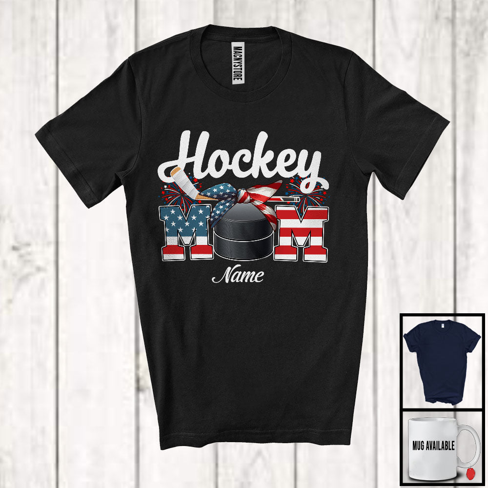 Personalized Custom Name Hockey Mom, Proud 4th Of July USA Flag Headband, Patriotic Family T-Shirt