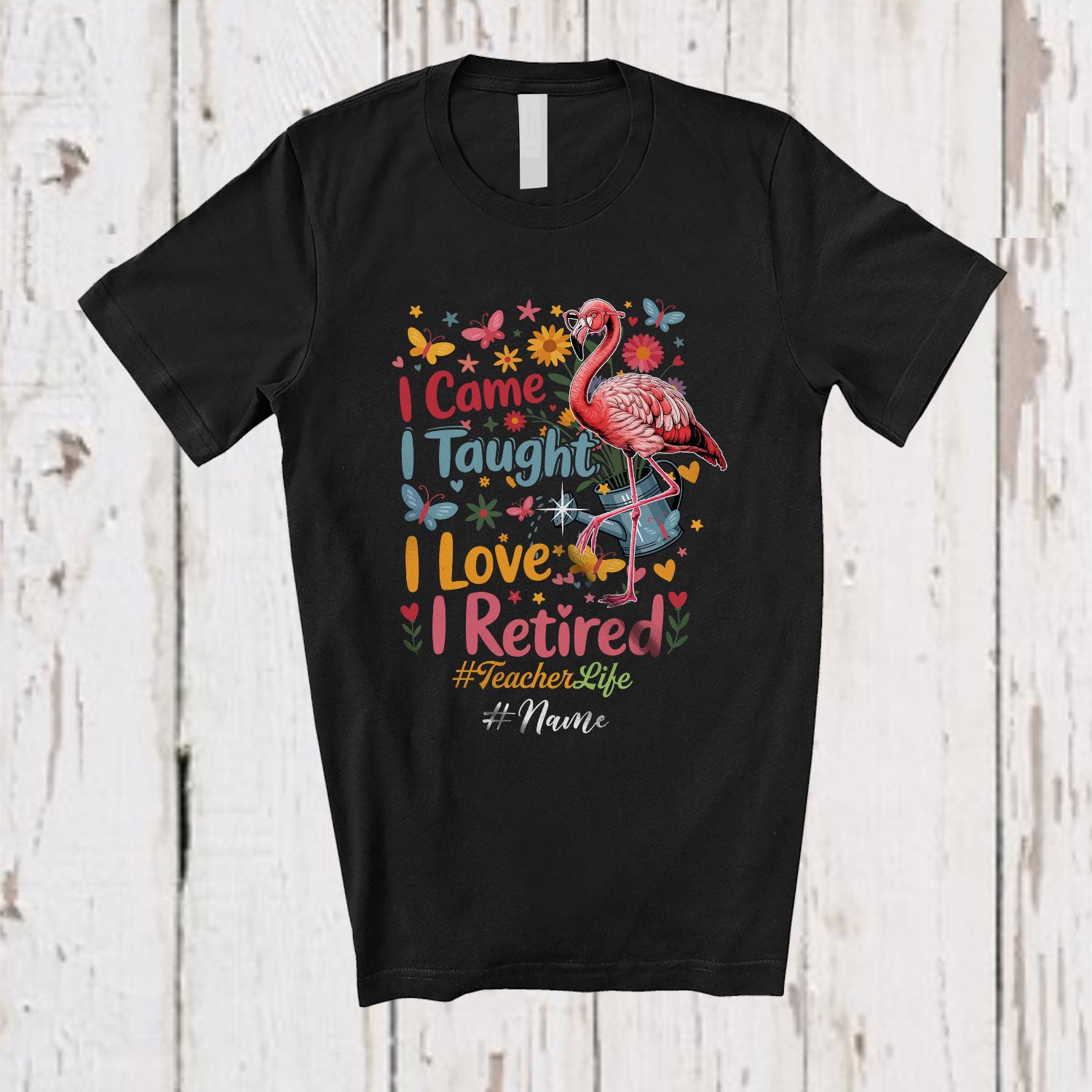 Personalized Custom Name I Came I Taught I Retired; Lovely Retirement Flamingo Teacher T-Shirt