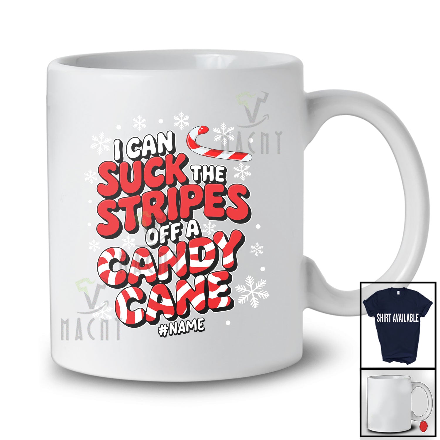 • Personalized Custom Name I Can Suck The Stripes Off A Candy Cane; Sarcastic Christmas Adult Naughty T-Shirt. This cotton t-shirt is a durable staple product with a classic fit. One of the most popular items, it has a relaxed style made for everyday and casual wear.