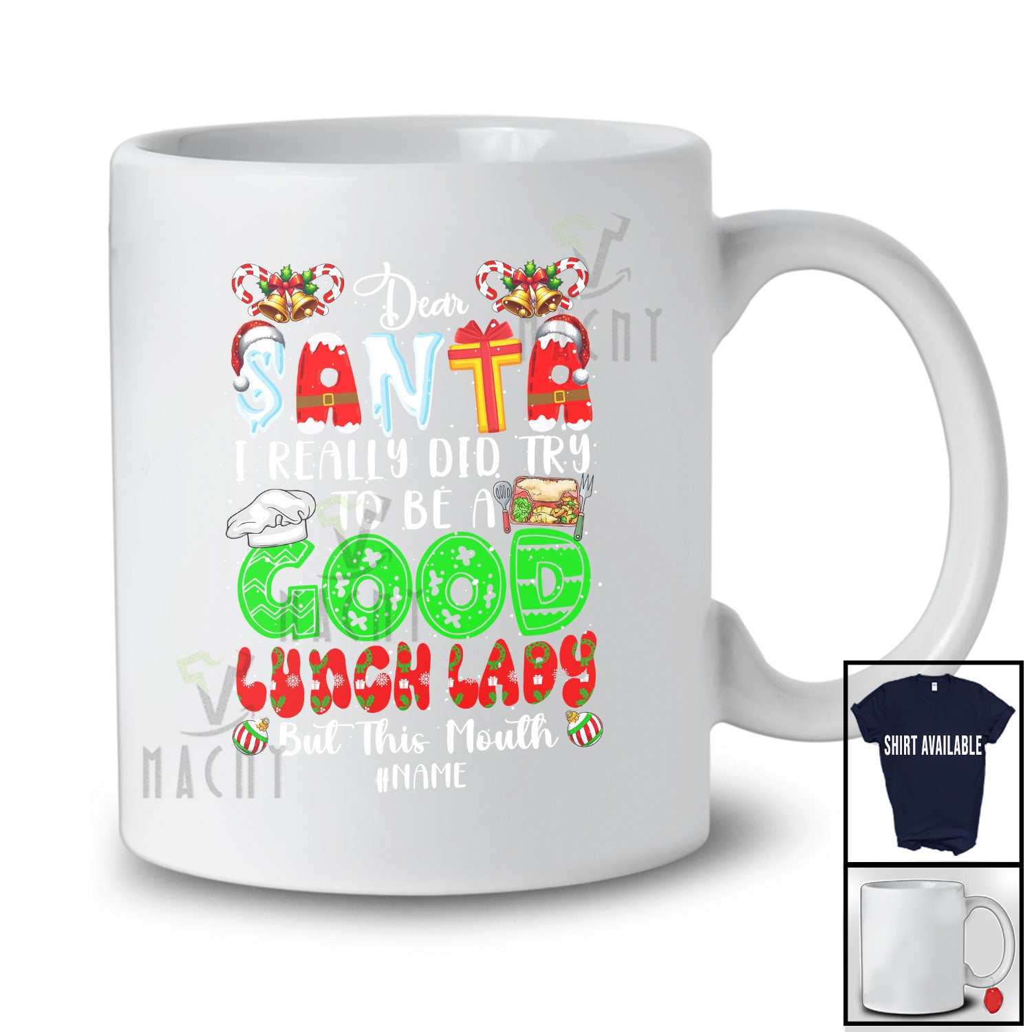 Personalized Custom Name I Did Try To Be A Good Lunch Lady; Lovely Christmas Santa Jobs T-Shirt. This cotton t-shirt is a durable staple product with a classic fit. One of the most popular items, it has a relaxed style made for everyday and casual wear.