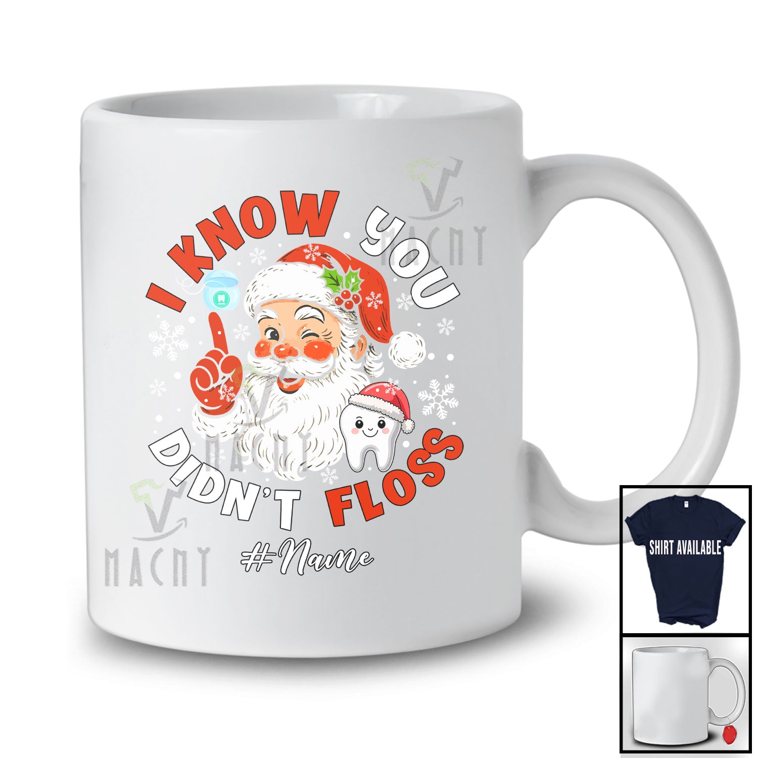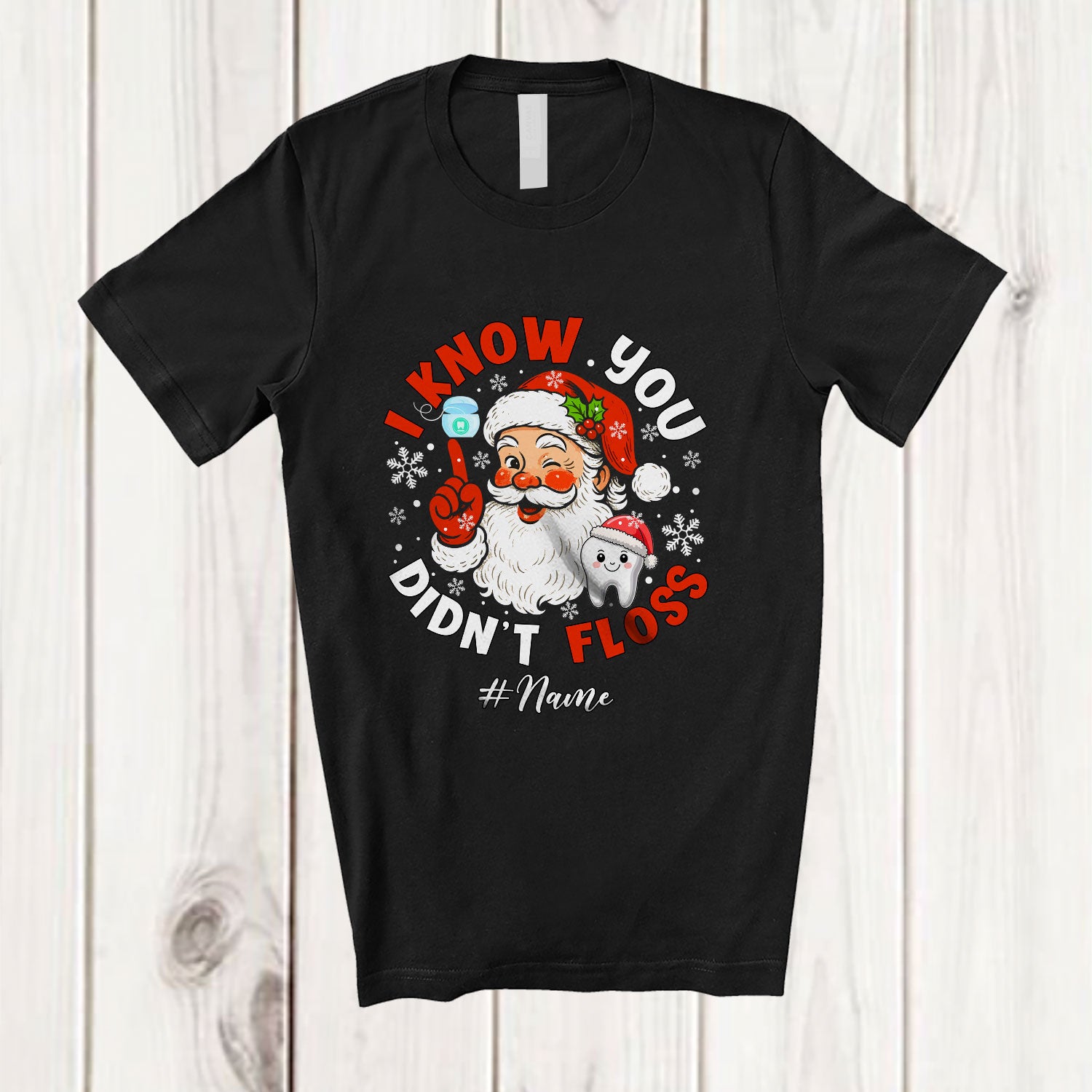 Personalized Custom Name I Know You Didn't Floss; Humorous Christmas Santa Dentist Dental T-Shirt