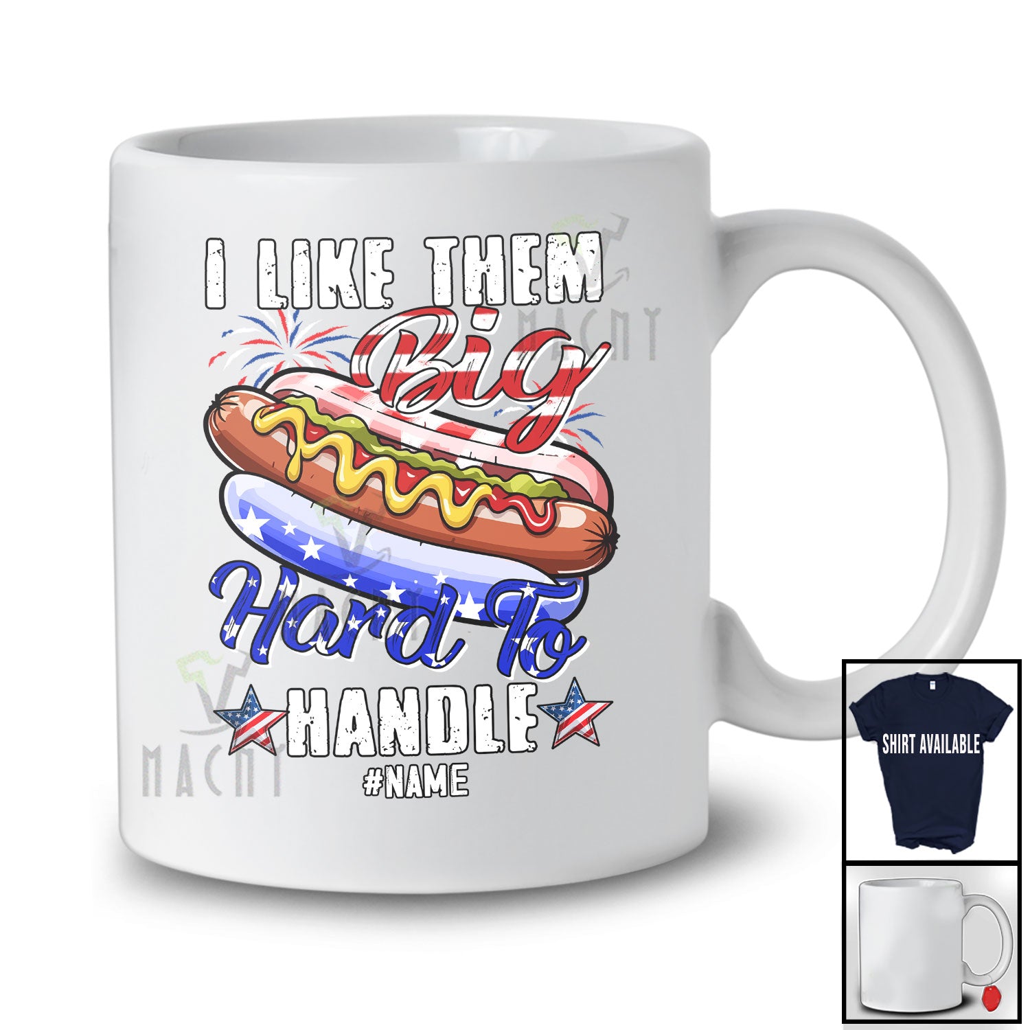 Personalized Custom Name I Like Them Big Hard To Handle; Amazing 4th of July Hot Dog Sausage T-Shirt. This cotton t-shirt is a durable staple product with a classic fit. One of the most popular items, it has a relaxed style made for everyday and casual wear.