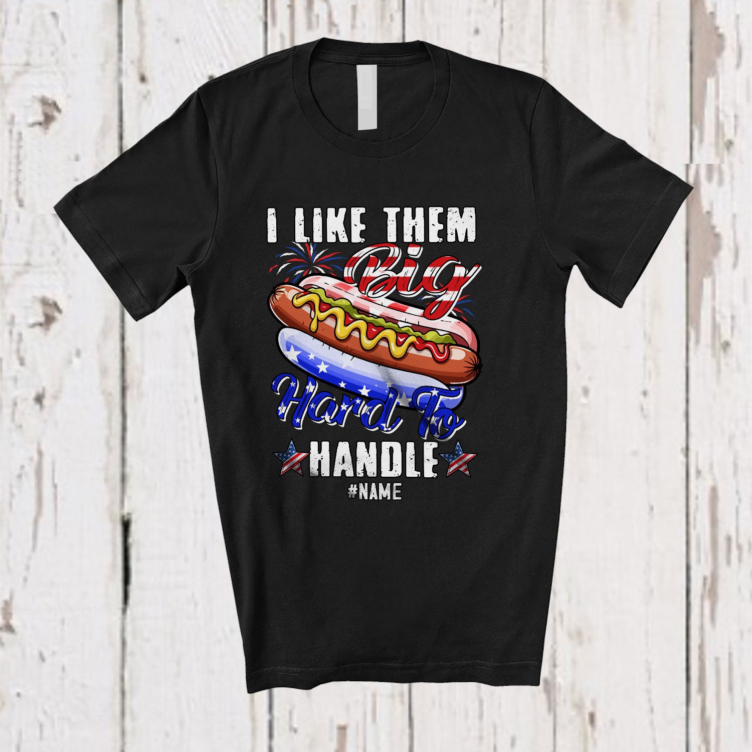 Personalized Custom Name I Like Them Big Hard To Handle; Amazing 4th of July Hot Dog Sausage T-Shirt