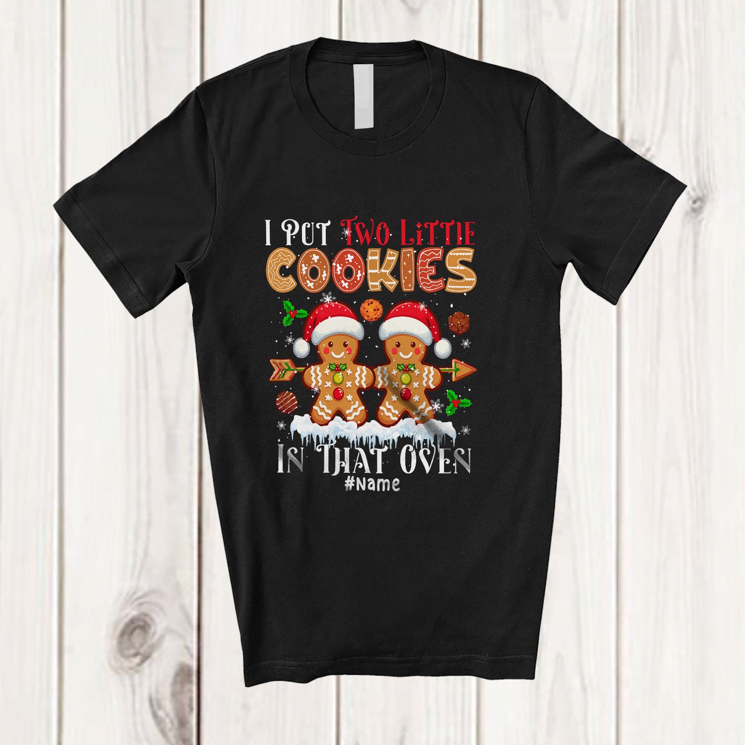 Personalized Custom Name I Put Two Little Cookies In That Oven; Lovely Pregnancy Christmas T-Shirt