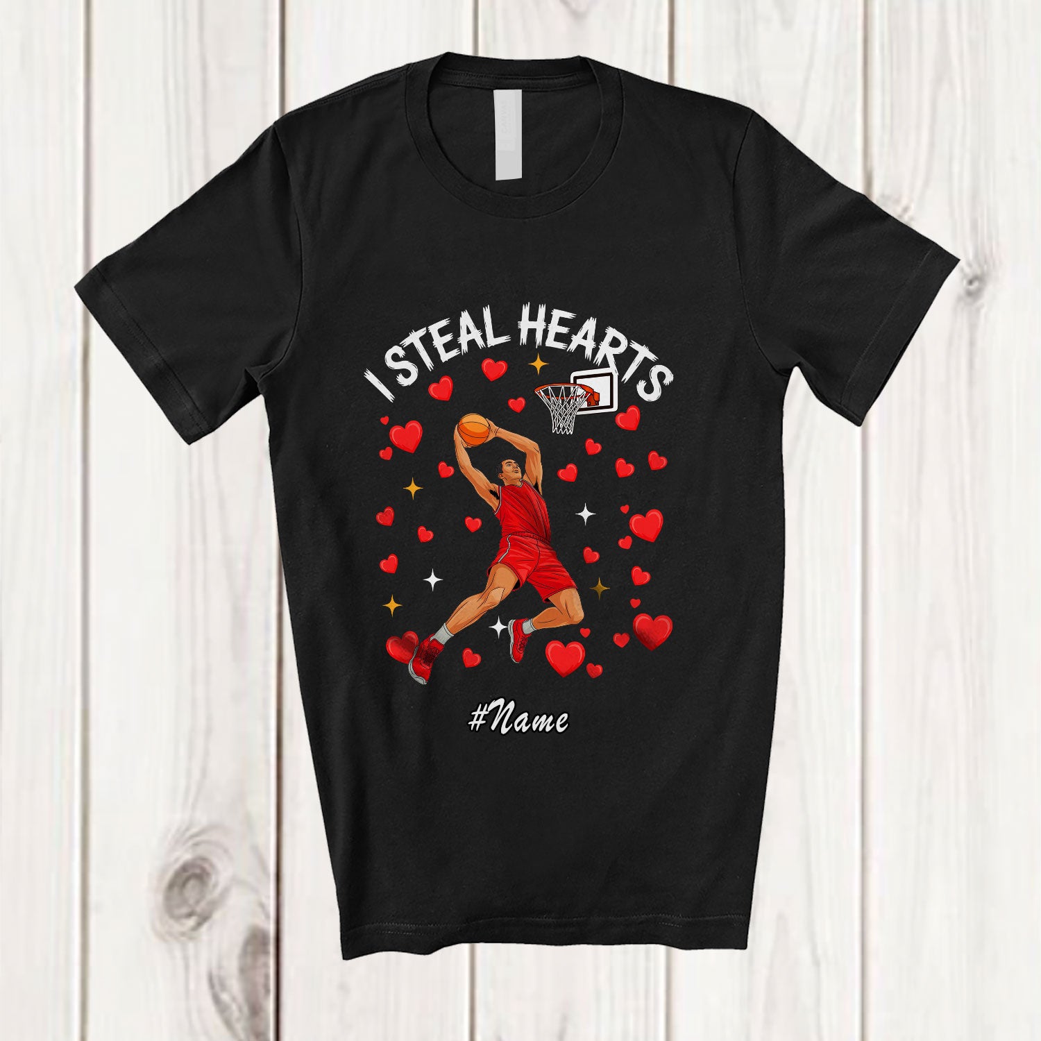 Personalized Custom Name I Steal Hearts; Amazing Valentine Basketball Player Team; Single Lover T-Shirt