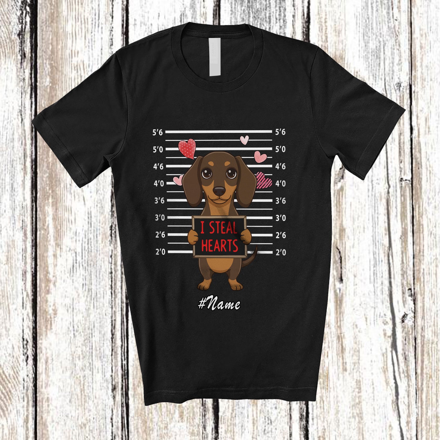 Personalized Custom Name I Steal Hearts; Humorous Valentine Dachshund Owner Lover T-Shirt