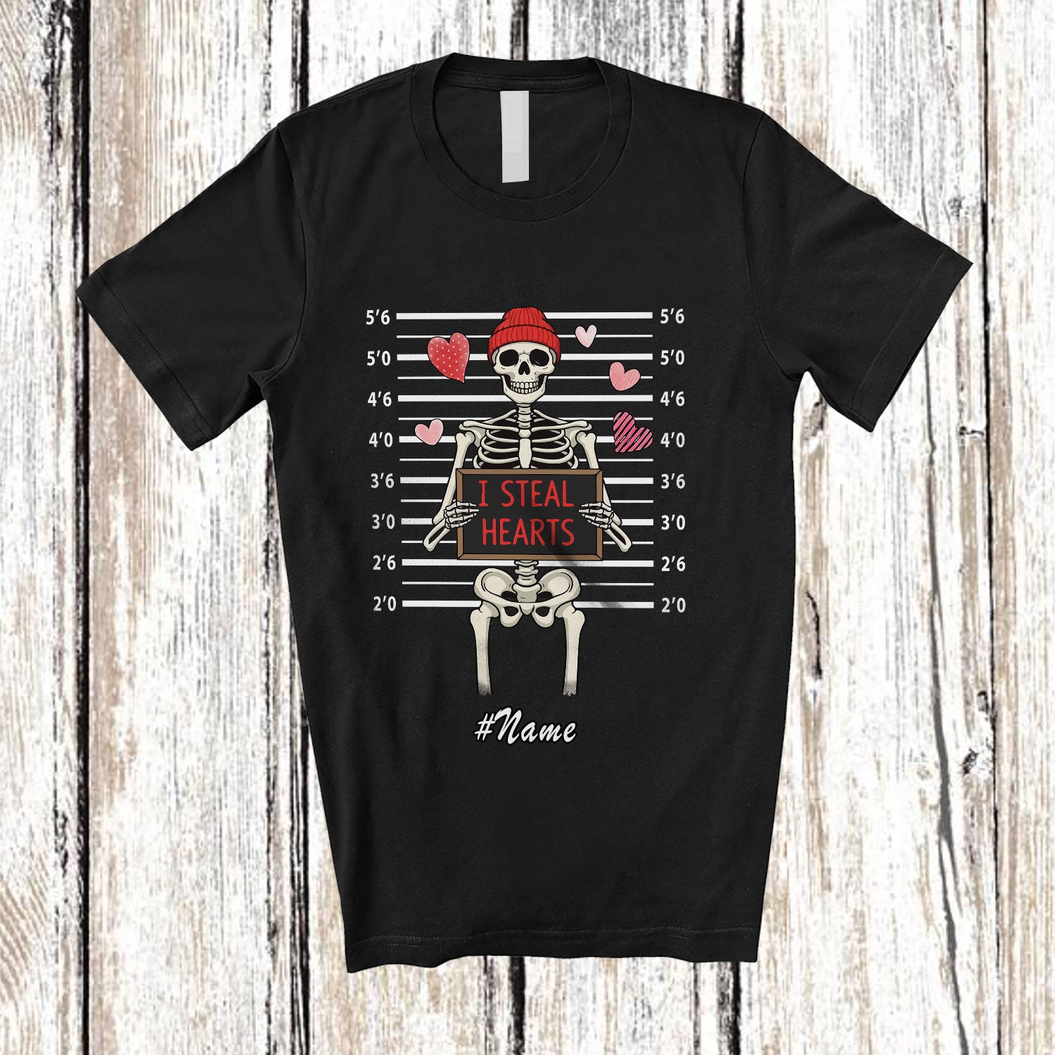 Personalized Custom Name I Steal Hearts; Humorous Valentine Skeleton Hearts Lover T-Shirt