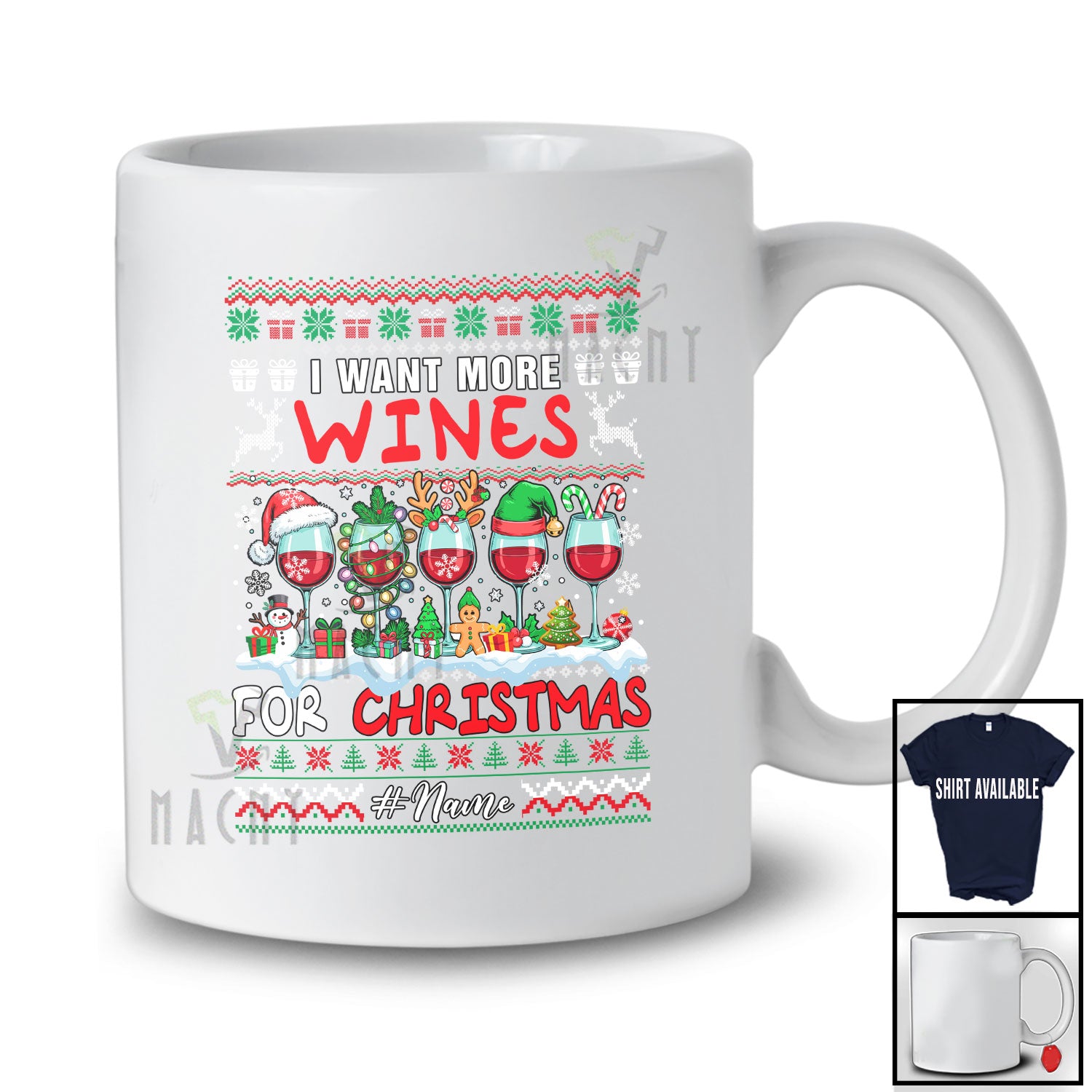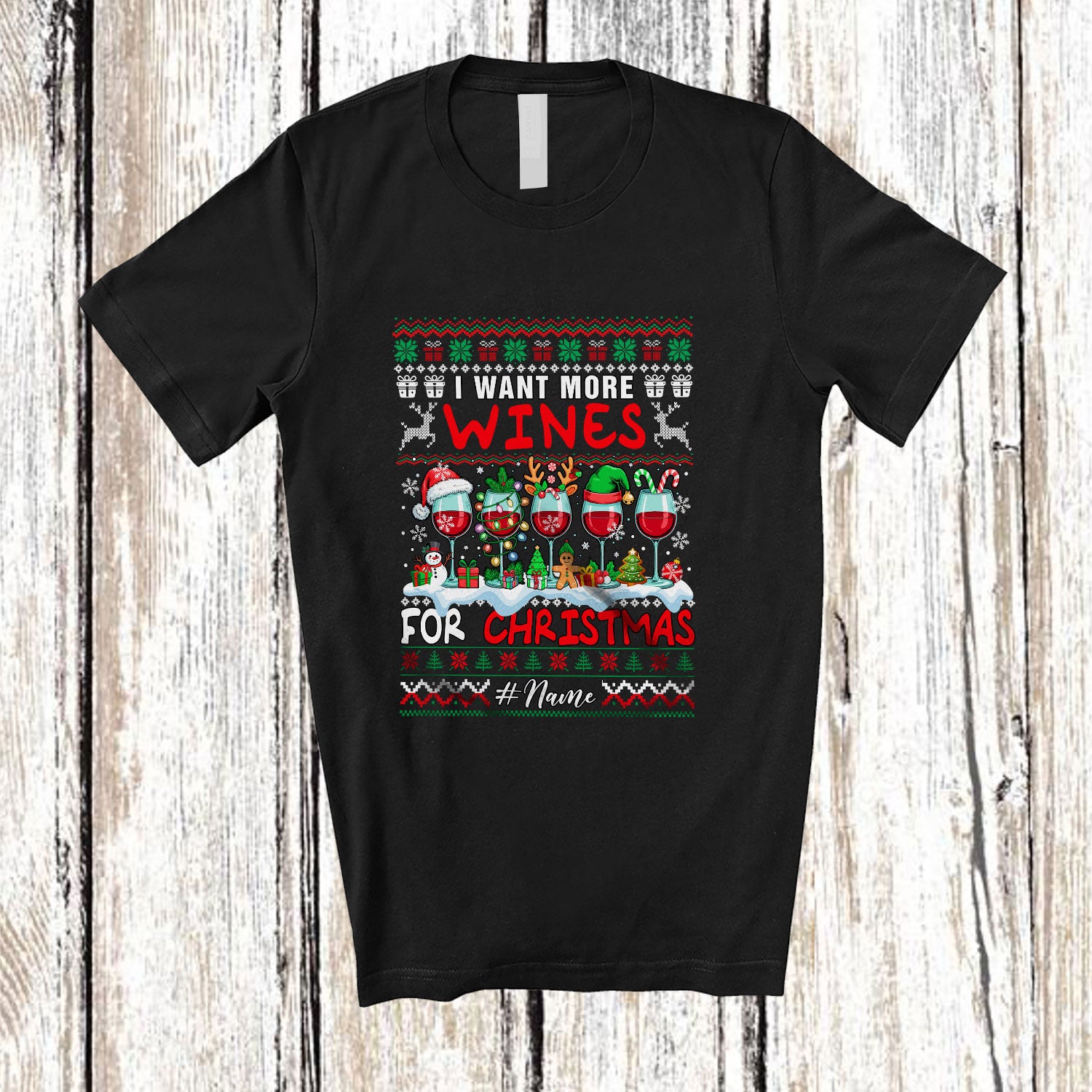 Personalized Custom Name I Want More Wines For Christmas; Lovely Sweater Drinking Drunker T-Shirt