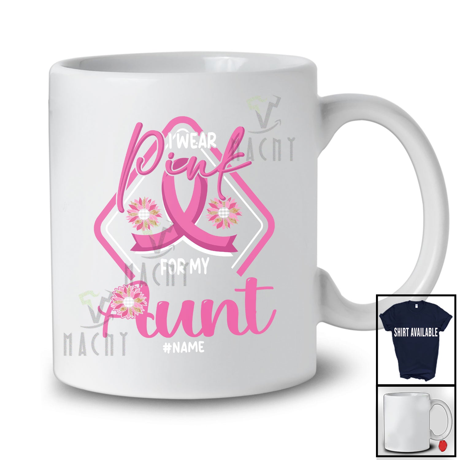 Personalized Custom Name I Wear Pink For My Aunt; Awesome Breast Cancer Sunflowers; Family T-Shirt. This cotton t-shirt is a durable staple product with a classic fit. One of the most popular items, it has a relaxed style made for everyday and casual wear.