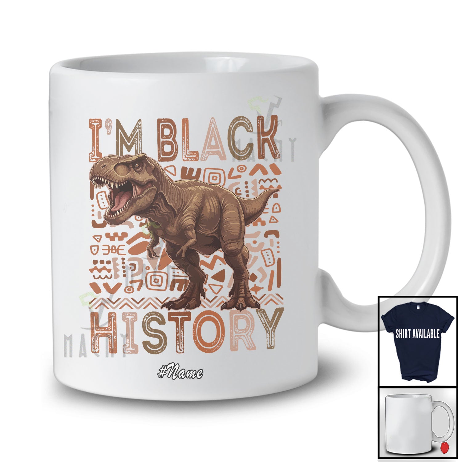 Personalized Custom Name I'm Black History; Joyful Black History Month T-Rex African Afro Family T-Shirt