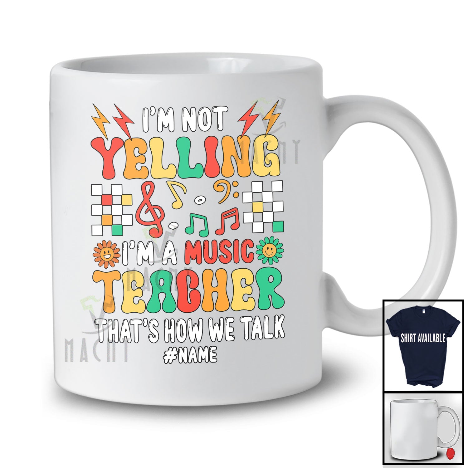 Personalized Custom Name I'm Not Yelling I'm Music Teacher; Joyful Flowers Teaching Retro T-Shirt. This cotton t-shirt is a durable staple product with a classic fit. One of the most popular items, it has a relaxed style made for everyday and casual wear.