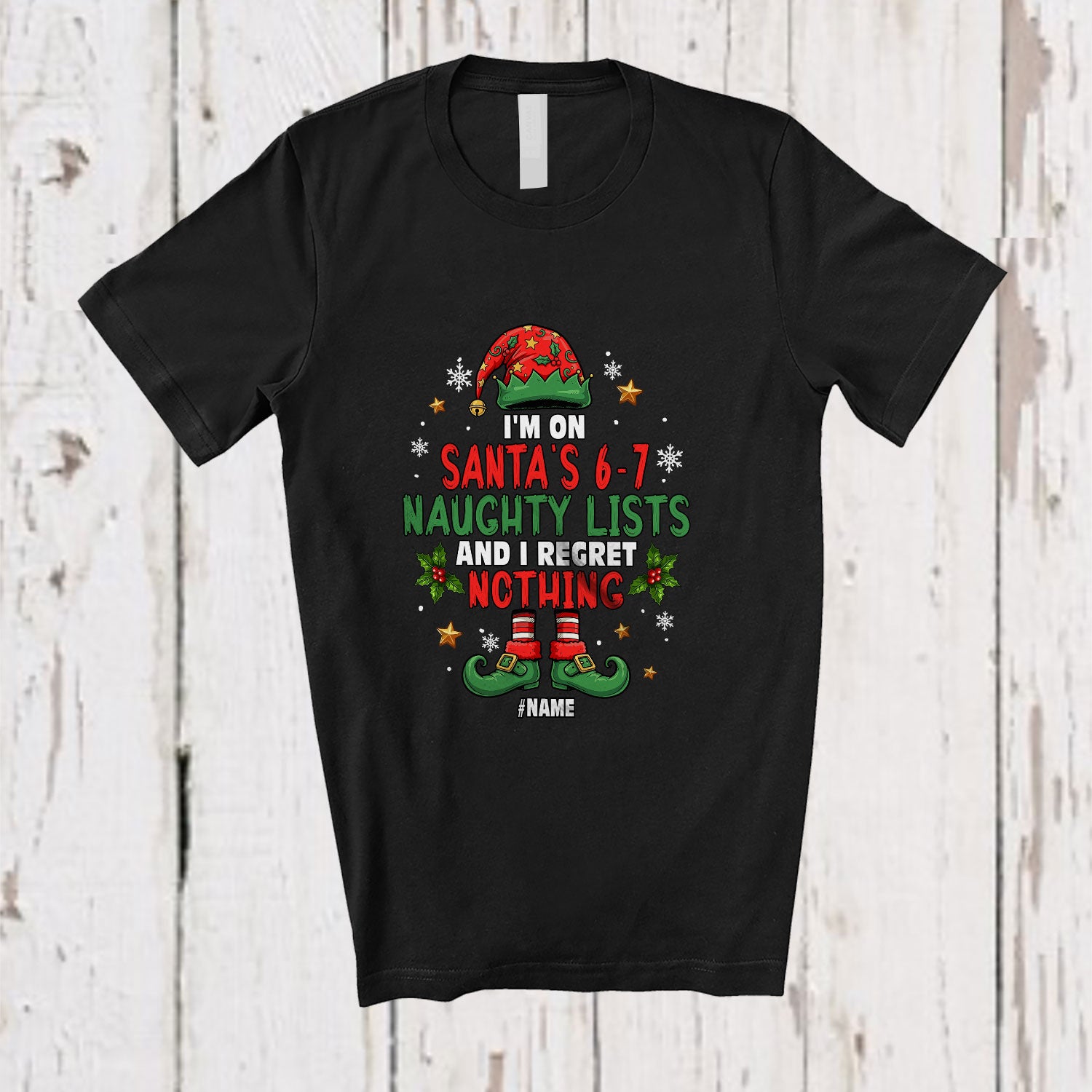Personalized Custom Name I'm On Santa's 6 7 Naughty Lists; Merry Christmas Six Seven Elf T-Shirt