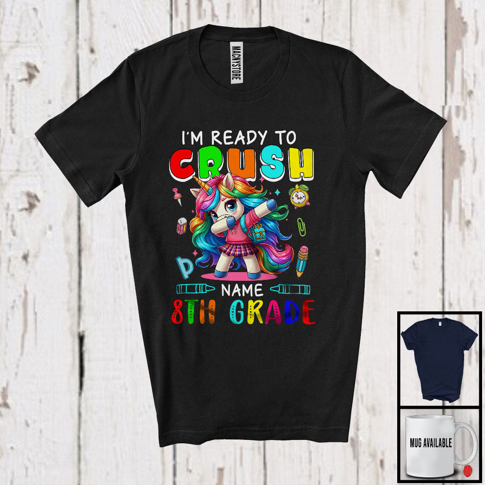 Personalized Custom Name I'm Ready To Crush 8th Grade, Lovely First Day Of School Dabbing Unicorn T-Shirt