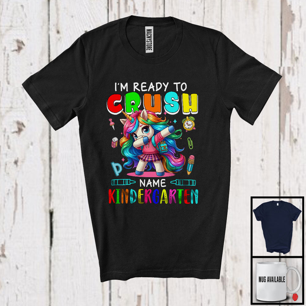 Personalized Custom Name I'm Ready To Crush Kindergarten, Lovely First Day Of School Dabbing Unicorn T-Shirt
