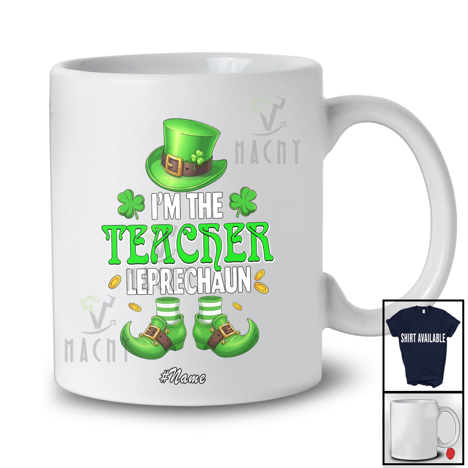 Personalized Custom Name I'm The Teacher Leprechaun; Proud St. Patrick's Day Jobs Shamrocks T-Shirt. This cotton t-shirt is a durable staple product with a classic fit. One of the most popular items, it has a relaxed style made for everyday and casual wear.