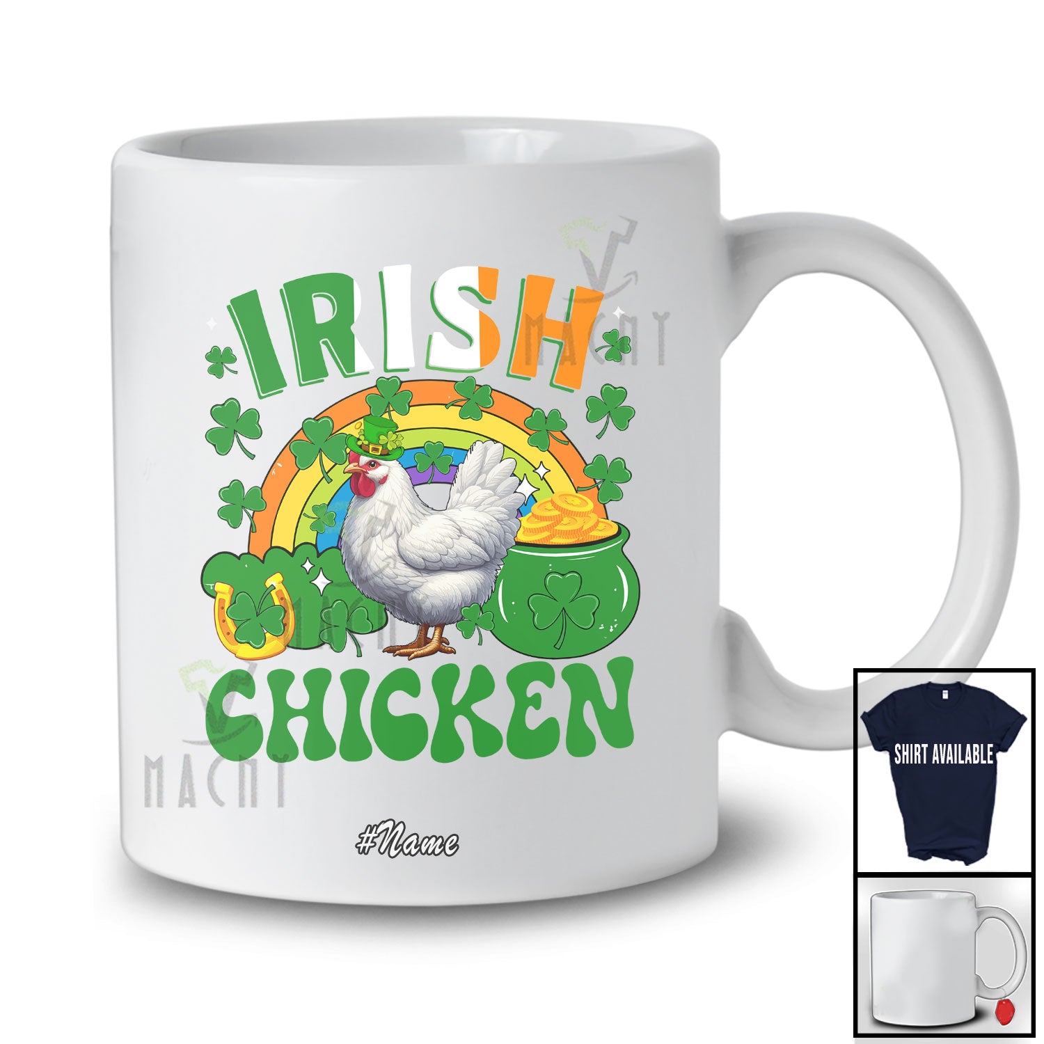 Personalized Custom Name Irish Chicken; Amazing St. Patrick's Day Rainbow; Lucky Shamrock Farmer T-Shirt. This cotton t-shirt is a durable staple product with a classic fit. One of the most popular items, it has a relaxed style made for everyday and casual wear.