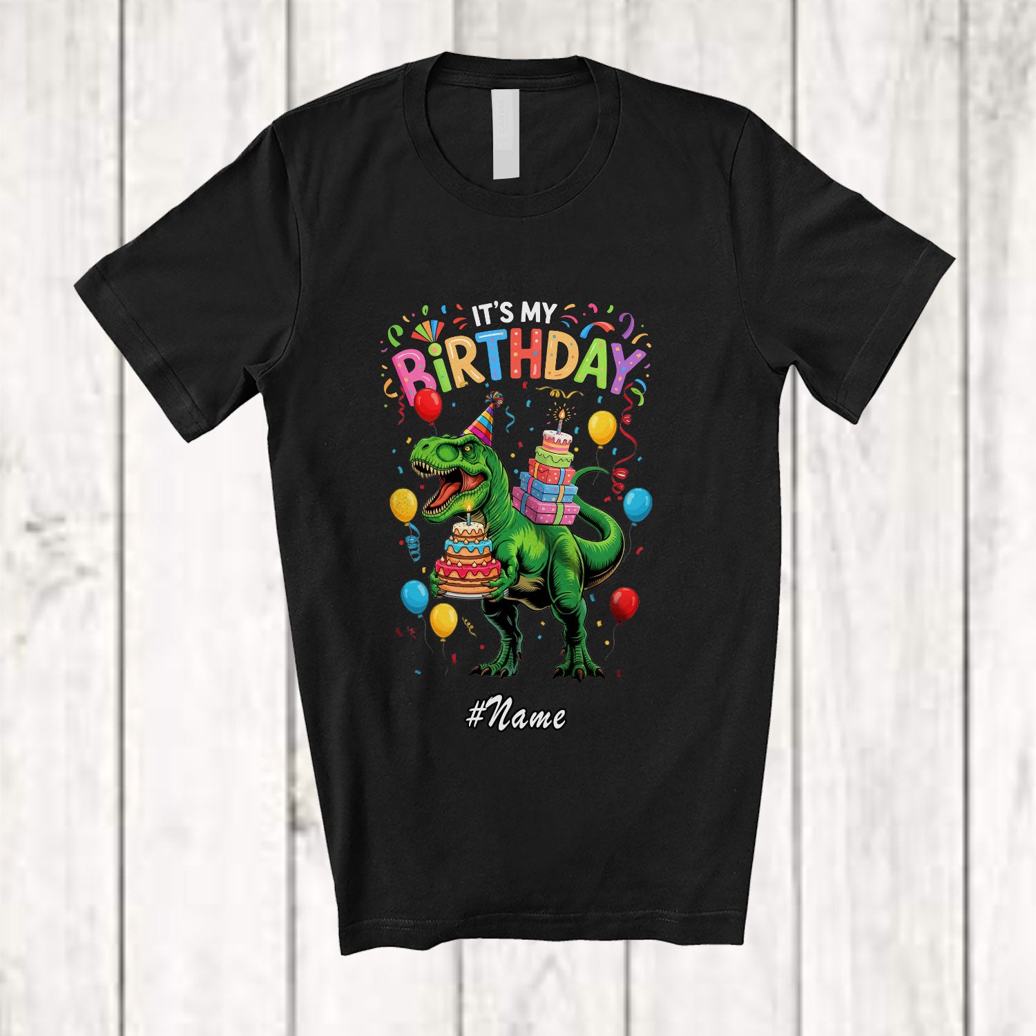 Personalized Custom Name It's My Birthday; Joyful Birthday Party T-Rex Dinosaur Lover Family Group T-Shirt