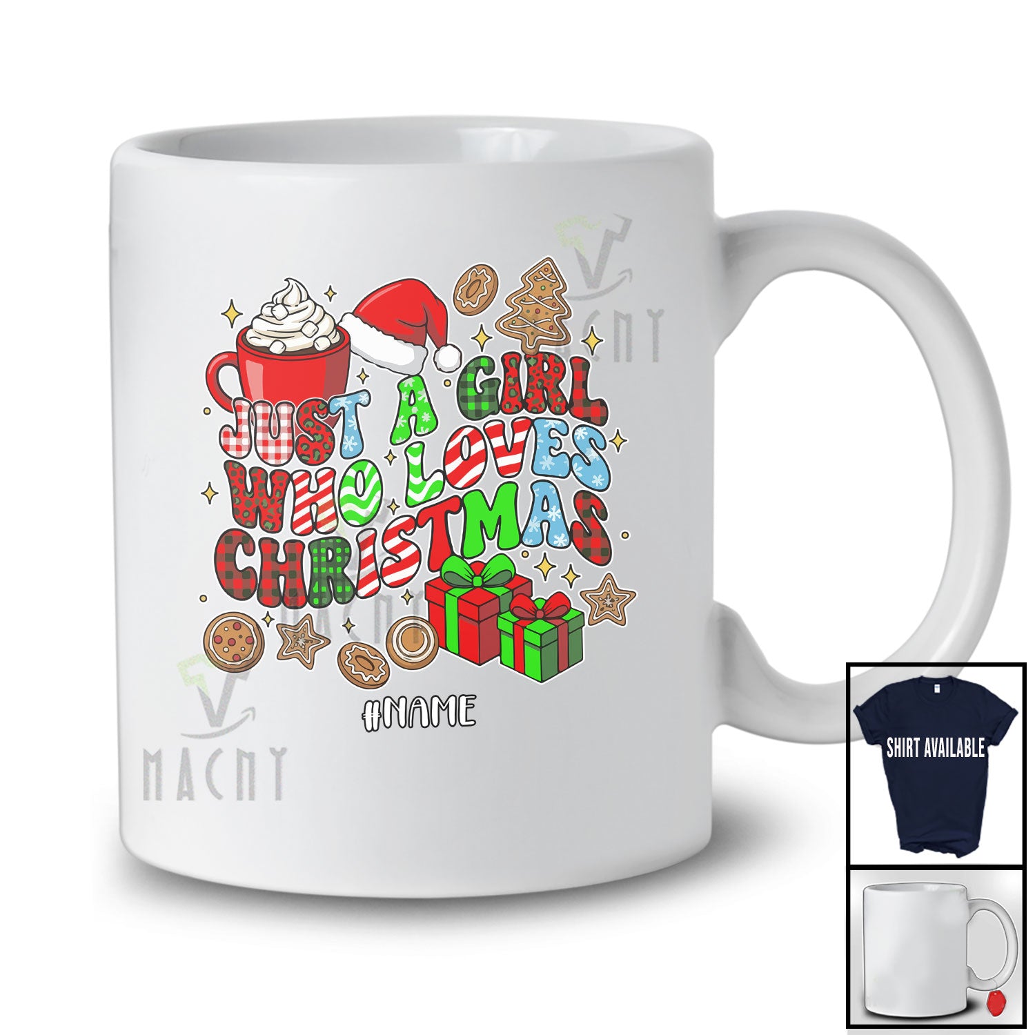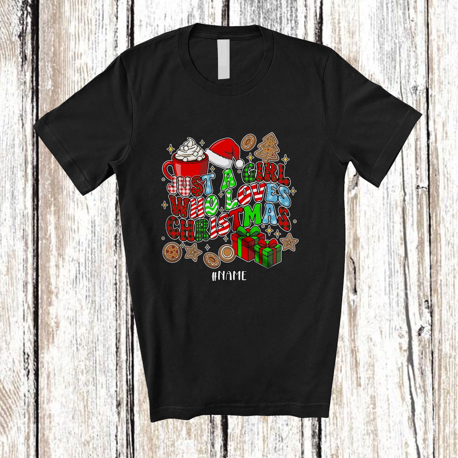 • Personalized Custom Name Just A Girl Who Loves Christmas; Adorable Leopard Plaid Coffee Cookies T-Shirt. This cotton t-shirt is a durable staple product with a classic fit. One of the most popular items, it has a relaxed style made for everyday and casual wear.