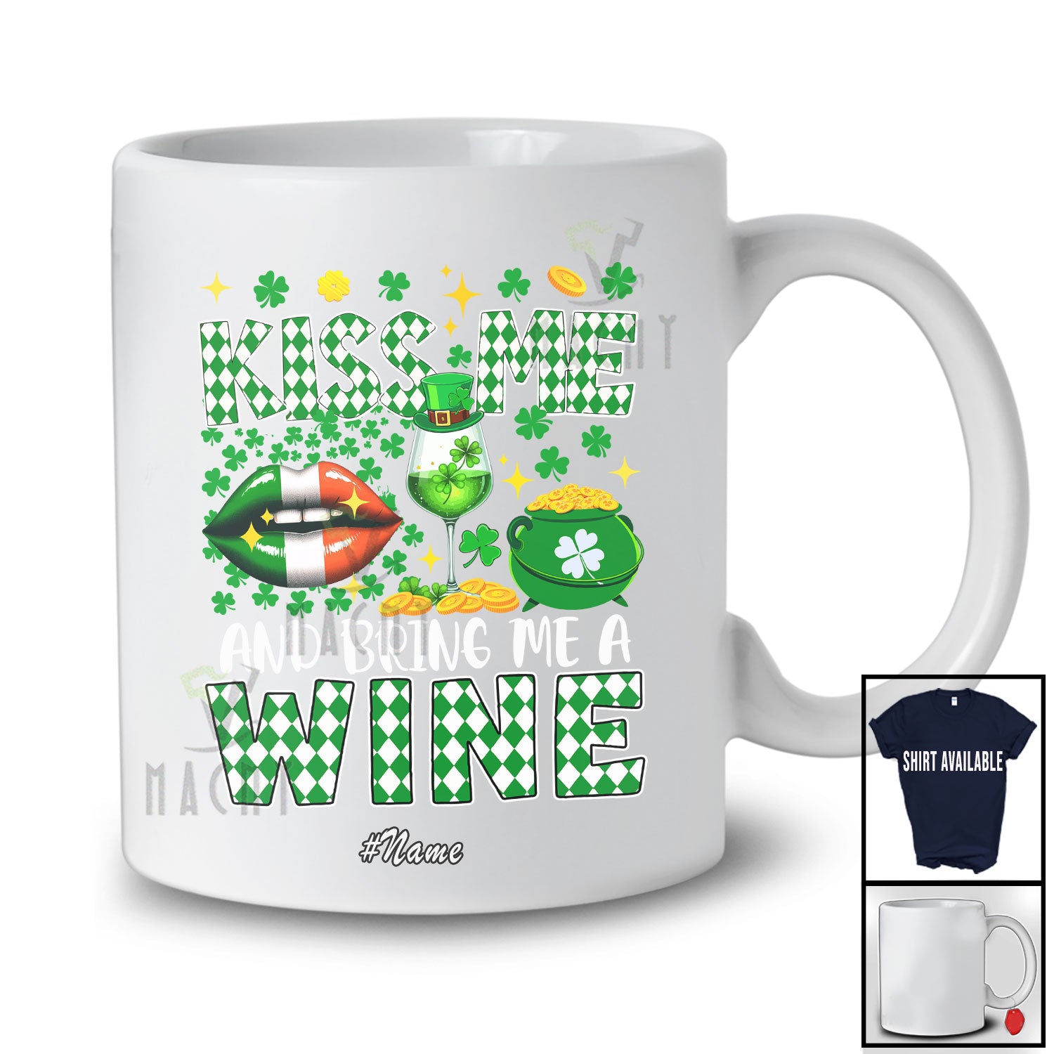 This Personalized Custom Name Kiss And Bring Me A Wine; Joyful St. Patrick's Day Irish Lips; Drinking T-Shirt is great idea gift for your family, friends in this birthday, christmas, mother's day, father's day, patrick's day or any holiday.