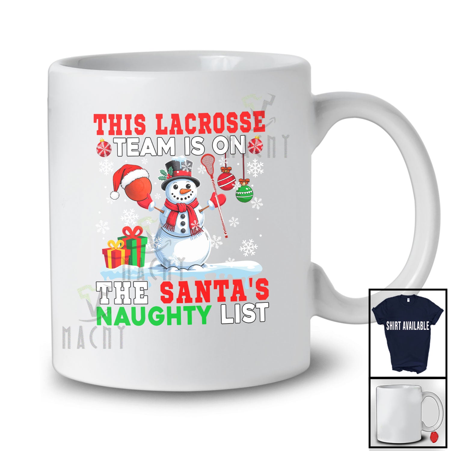 Personalized Custom Name Lacrosse Team On Naughty List; Joyful Christmas Player Snowman T-Shirt
