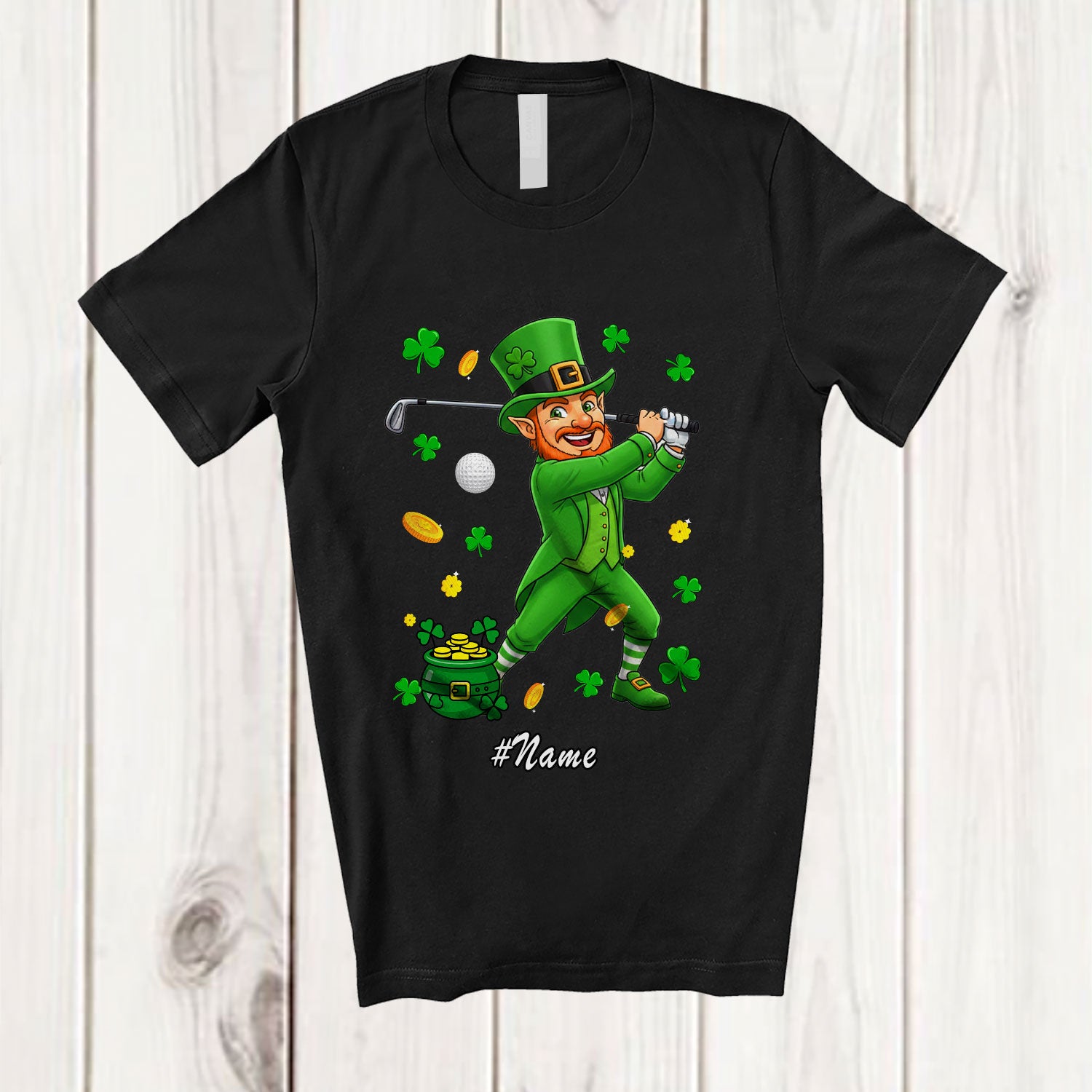 Personalized Custom Name Leprechaun Playing Golf; Awesome St. Patrick's Day Sport Player T-Shirt