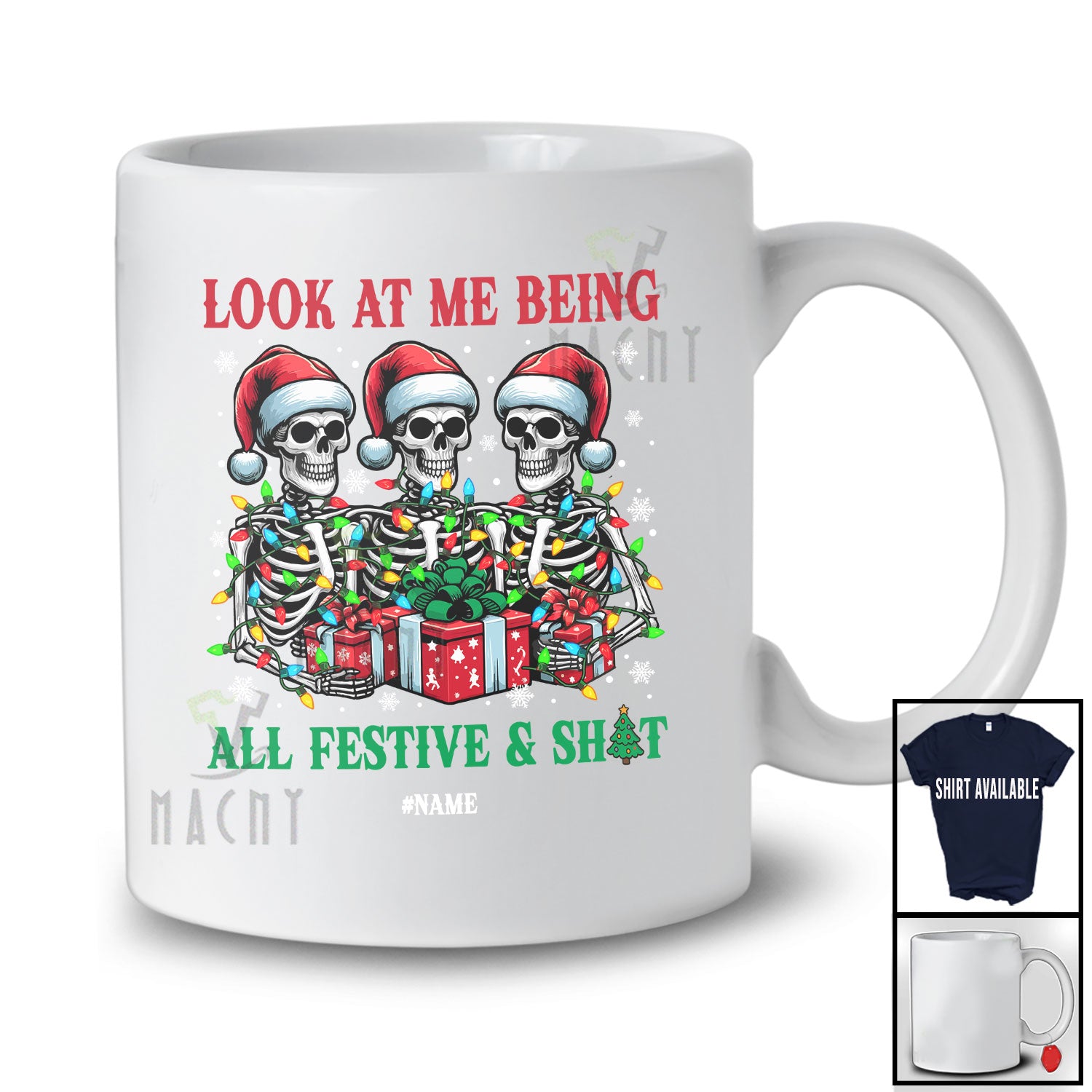 This Personalized Custom Name Look At Me Being All Festive; Sarcastic Christmas Three Santa Skeletons T-Shirt is great idea gift for your family, friends in this birthday, christmas, mother's day, father's day, patrick's day or any holiday.