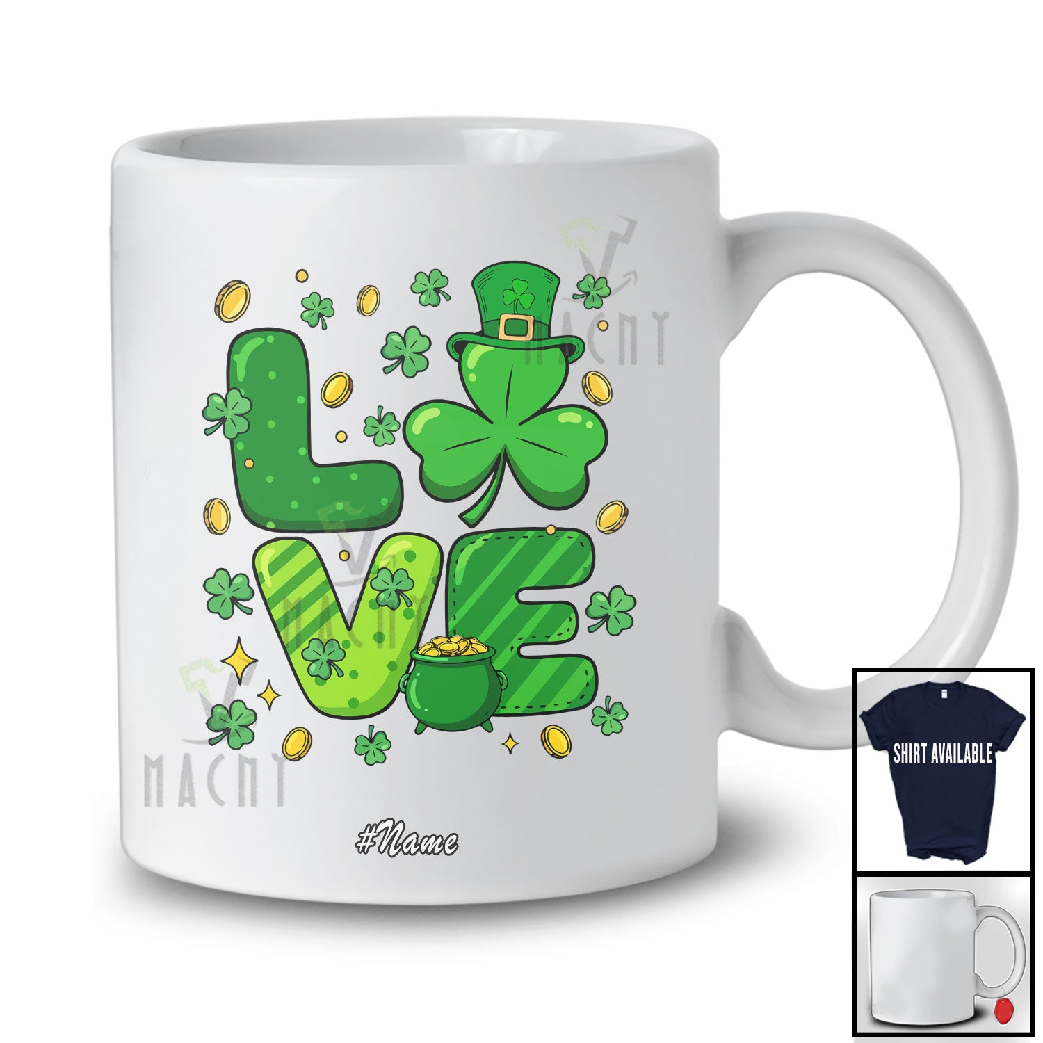 Personalized Custom Name LOVE; Amazing St. Patrick's Day Shamrocks Matching Irish Family Lover T-Shirt. This cotton t-shirt is a durable staple product with a classic fit. One of the most popular items, it has a relaxed style made for everyday and casual wear.
