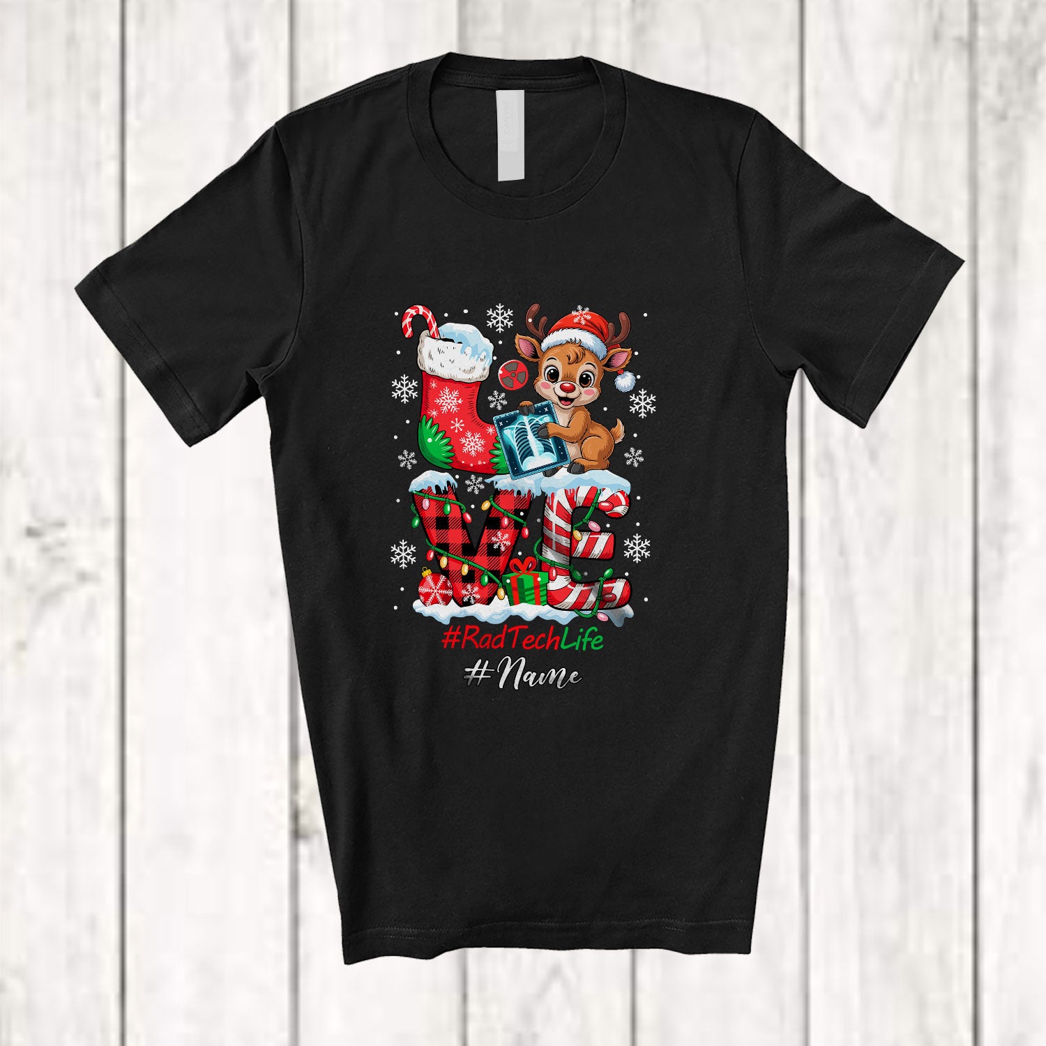 Personalized Custom Name LOVE Rad Tech; Proud Christmas Rad Tech Tools Jobs Reindeer T-Shirt