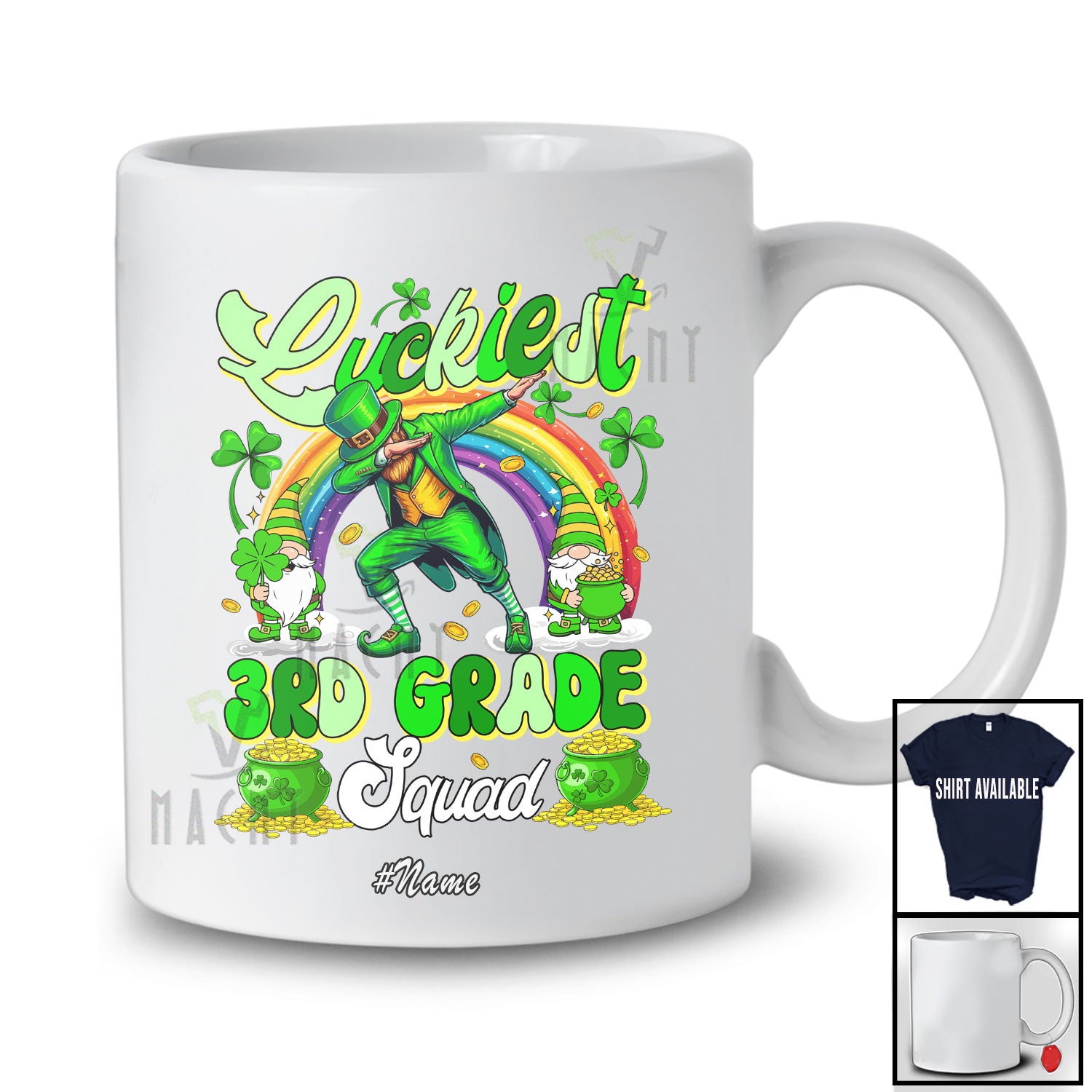 Personalized Custom Name Luckiest 3rd Grade; Joyful St. Patrick's Day Rainbow Dabbing Teacher T-Shirt. This cotton t-shirt is a durable staple product with a classic fit. One of the most popular items, it has a relaxed style made for everyday and casual wear.