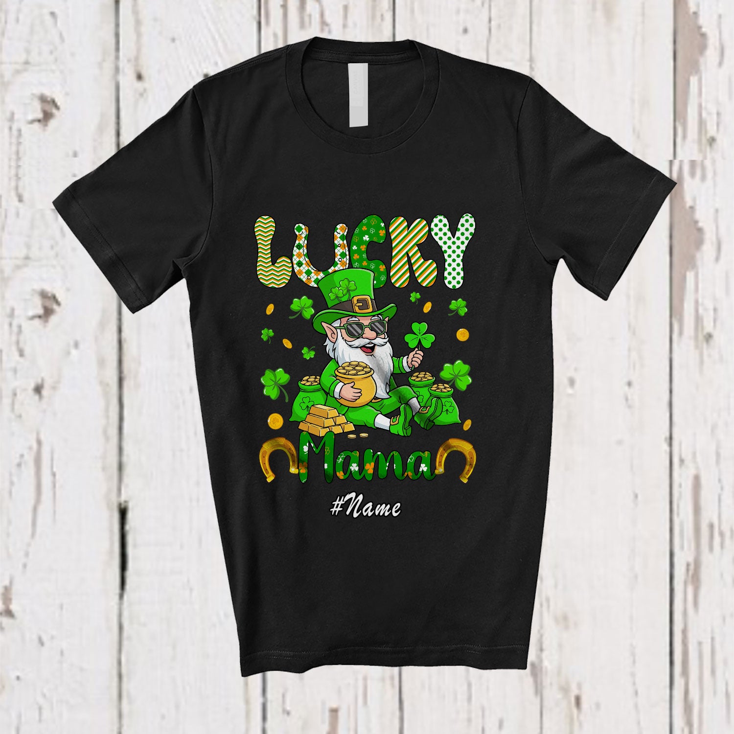 Personalized Custom Name Lucky Mama; Lovely St. Patrick's Day Gnome Shamrock; Irish Family T-Shirt. This cotton t-shirt is a durable staple product with a classic fit. One of the most popular items, it has a relaxed style made for everyday and casual wear.