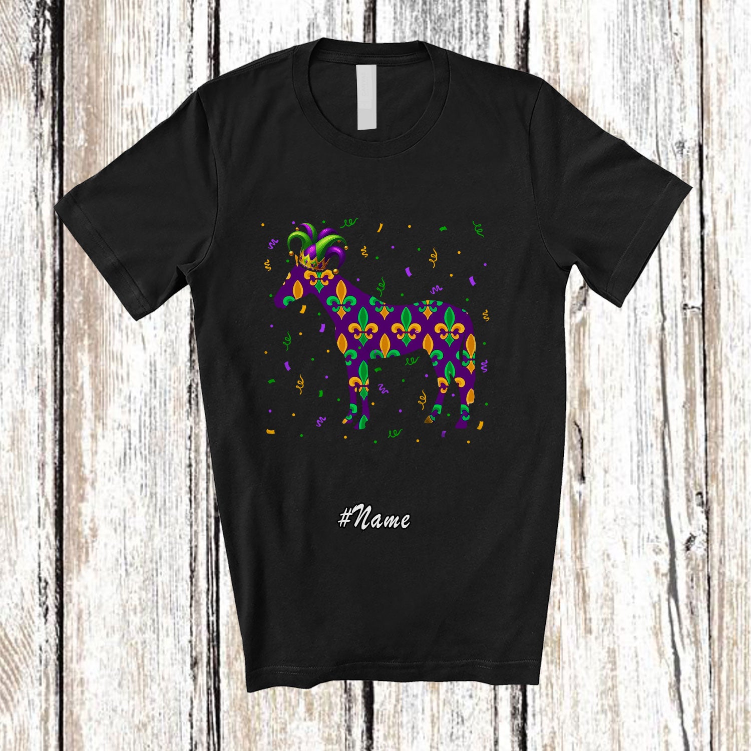 • Personalized Custom Name Mardi Gras Horse Shape; Lovely Farm Animal Farmer; Parades Group T-Shirt. This cotton t-shirt is a durable staple product with a classic fit. One of the most popular items, it has a relaxed style made for everyday and casual wear.