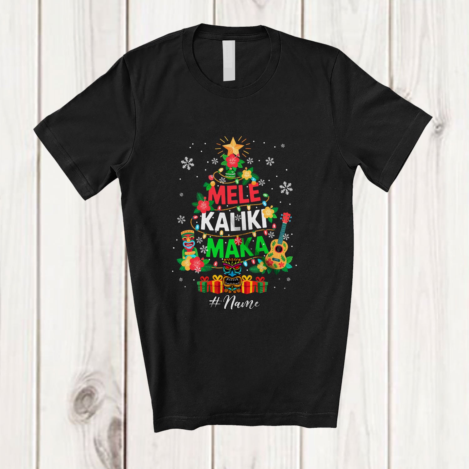 Personalized Custom Name Mele Kalikimaka; Merry Christmas Lights Tree Hawaiian Hawaii; Family T-Shirt