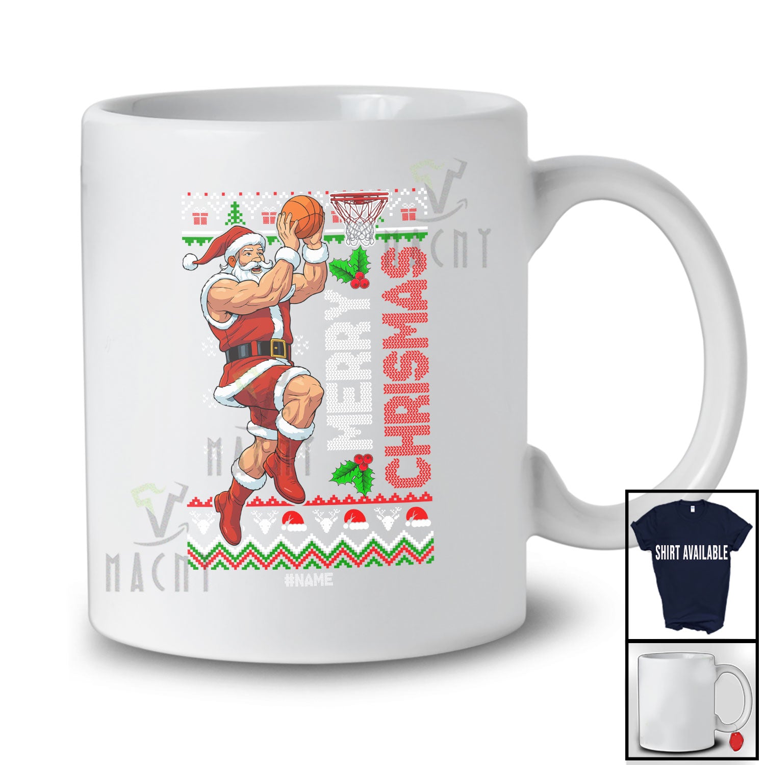 Personalized Custom Name Merry Chrismas; Amusing Sweater Santa Swish Basketball Player T-Shirt. This cotton t-shirt is a durable staple product with a classic fit. One of the most popular items, it has a relaxed style made for everyday and casual wear.