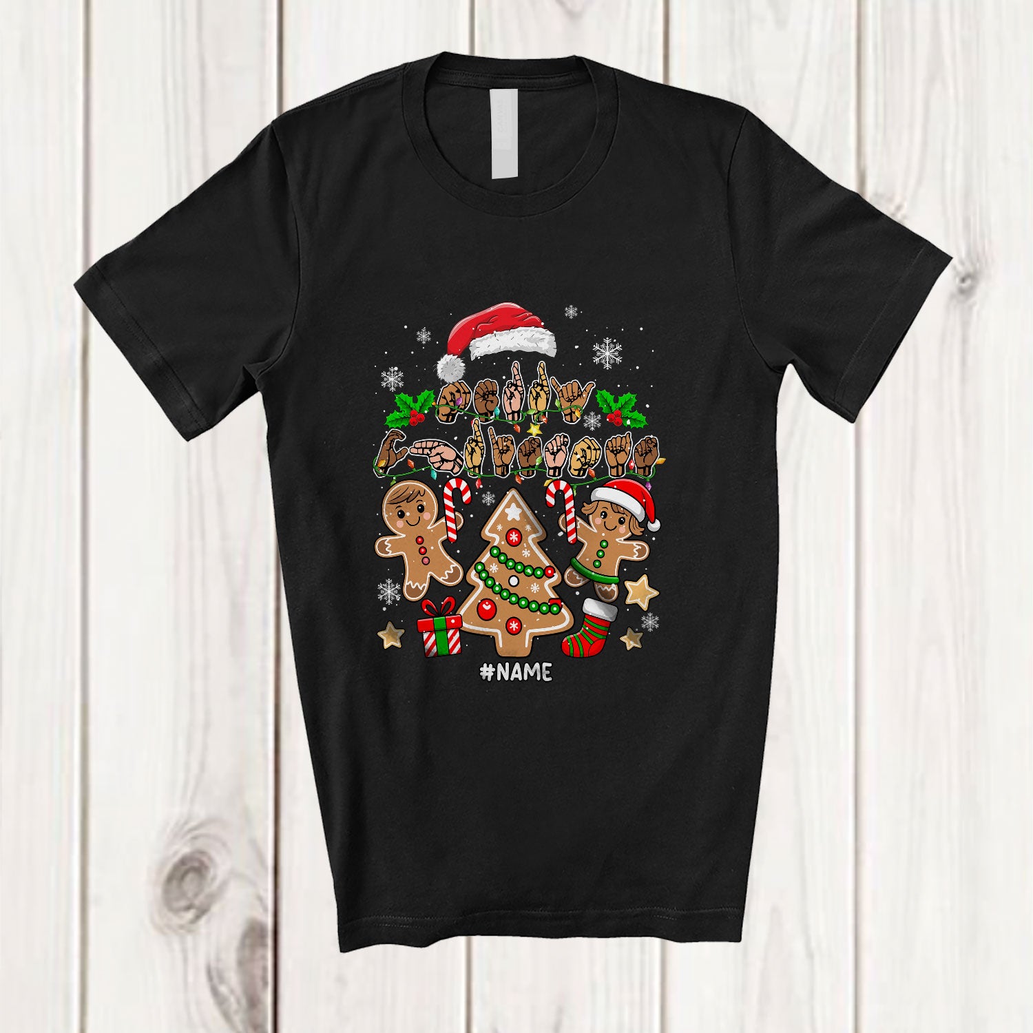 new MacnyStore - Personalized Custom Name Merry Christmas; Lovely ASL Sign Language Deaf Gingerbread T-Shirt – Macnystore