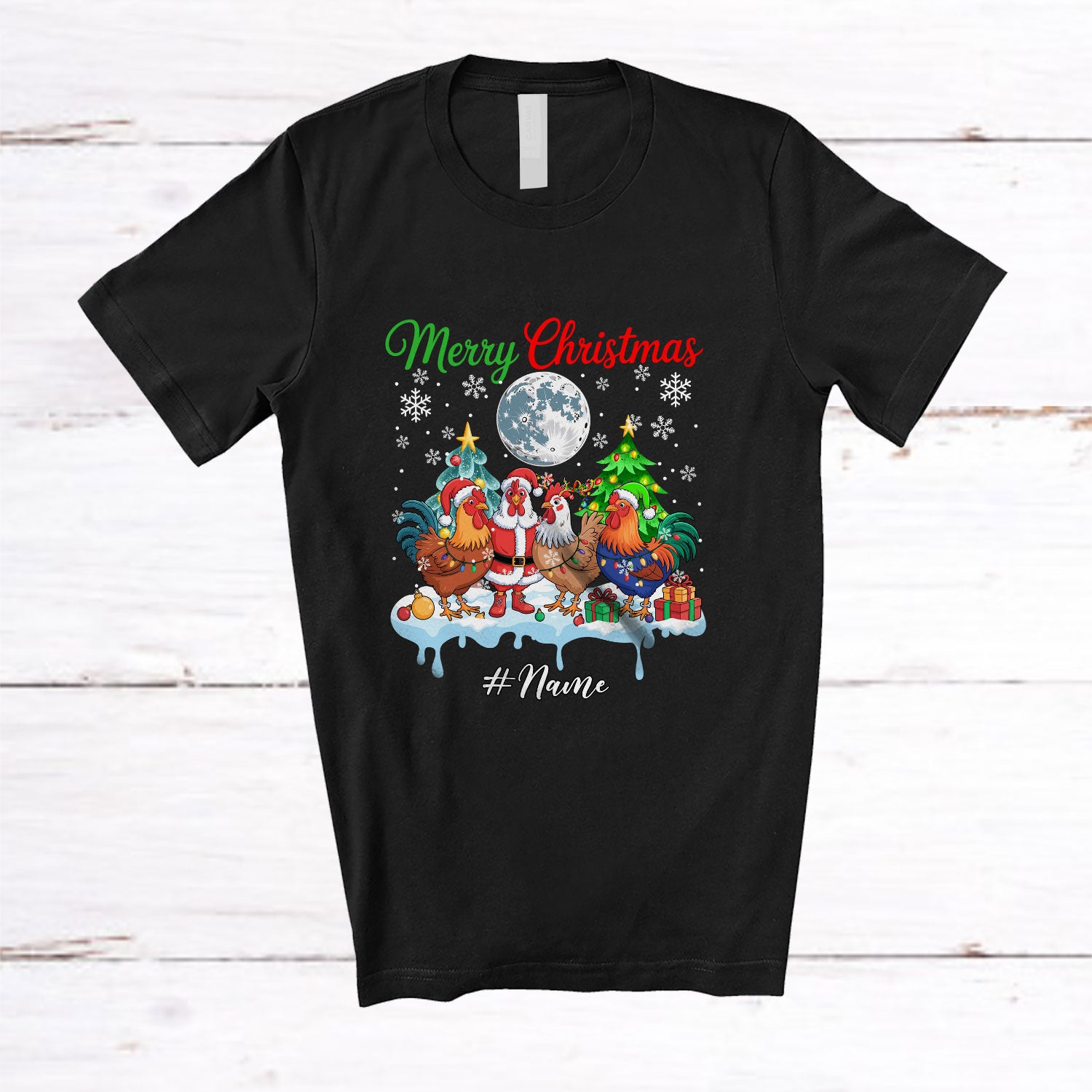 Personalized Custom Name Merry Christmas; Lovely Moon Elf Santa Chicken Farm; Farmer T-Shirt