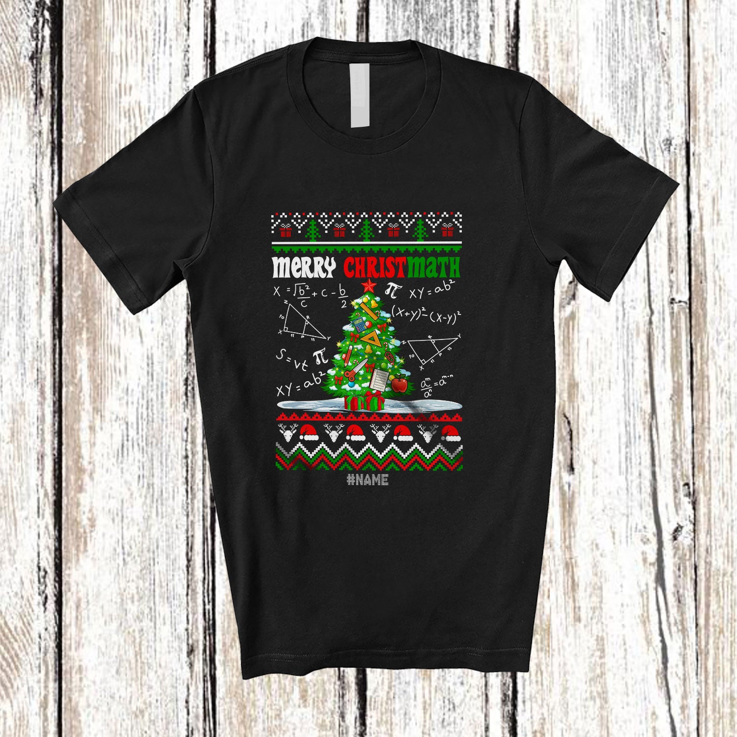 Personalized Custom Name Merry Christmath; Joyful Christmas Tree Sweater Math Students Teacher T-Shirt