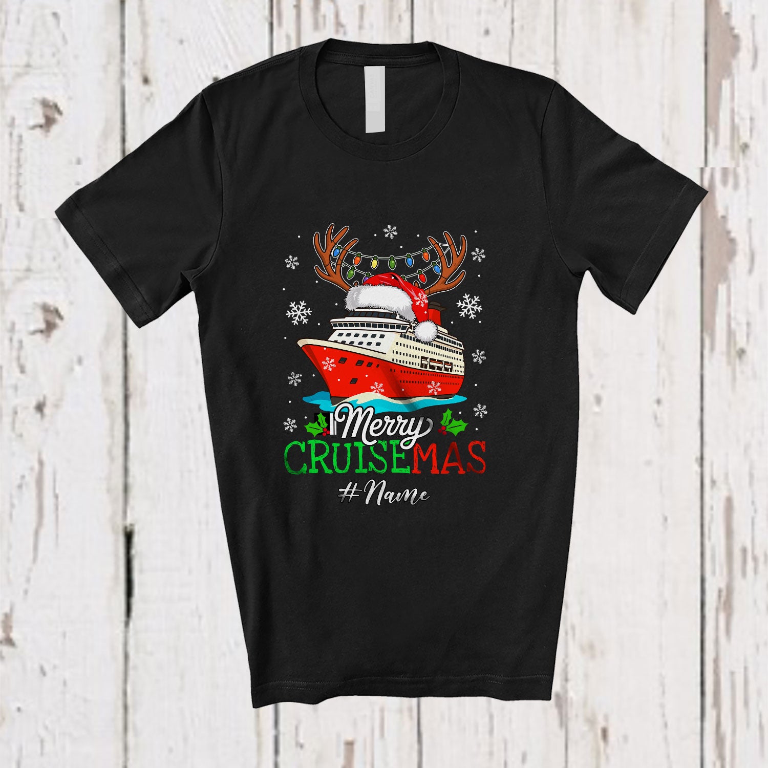 Personalized Custom Name Merry Cruisemas; Awesome Christmas Cruise Ship Reindeer X-mas Lights T-Shirt