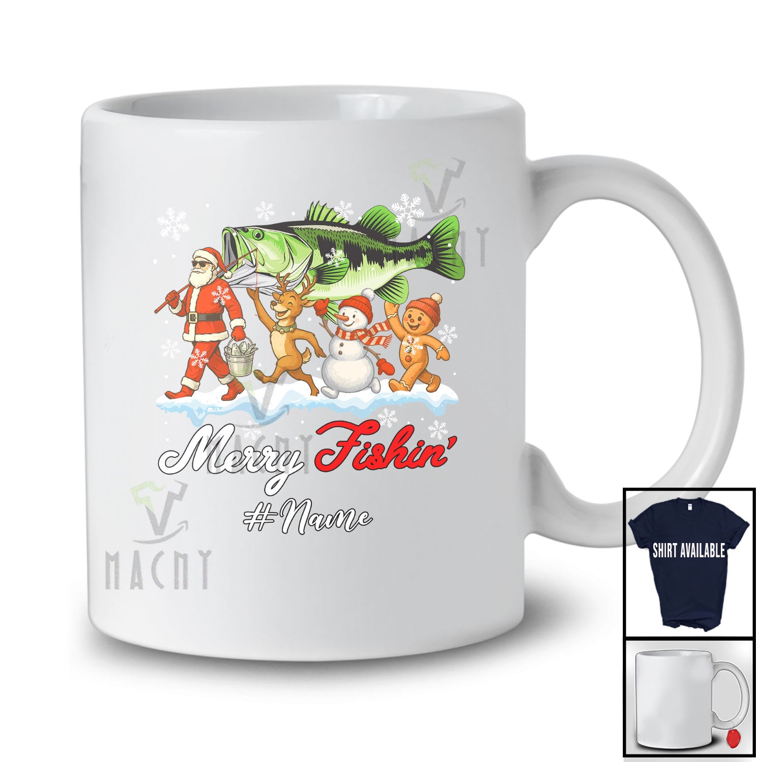 Every product is unique, just like you. If you're looking for a product that fits the mold of your life, the Personalized Custom Name Merry Fishin'; Joyful Christmas Santa Reindeer Snowman Fishing; Family T-Shirt is for you.