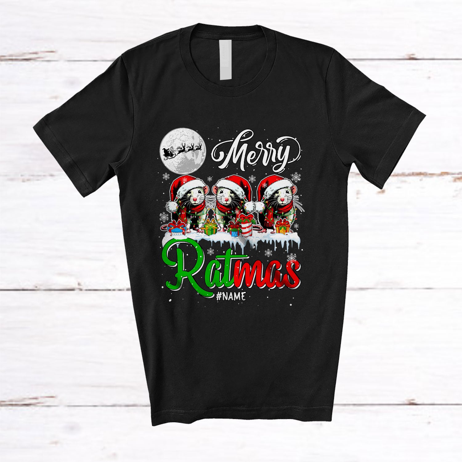 Personalized Custom Name Merry Ratmas; Amazing Christmas Three Santa Rat; Snow Animal T-Shirt