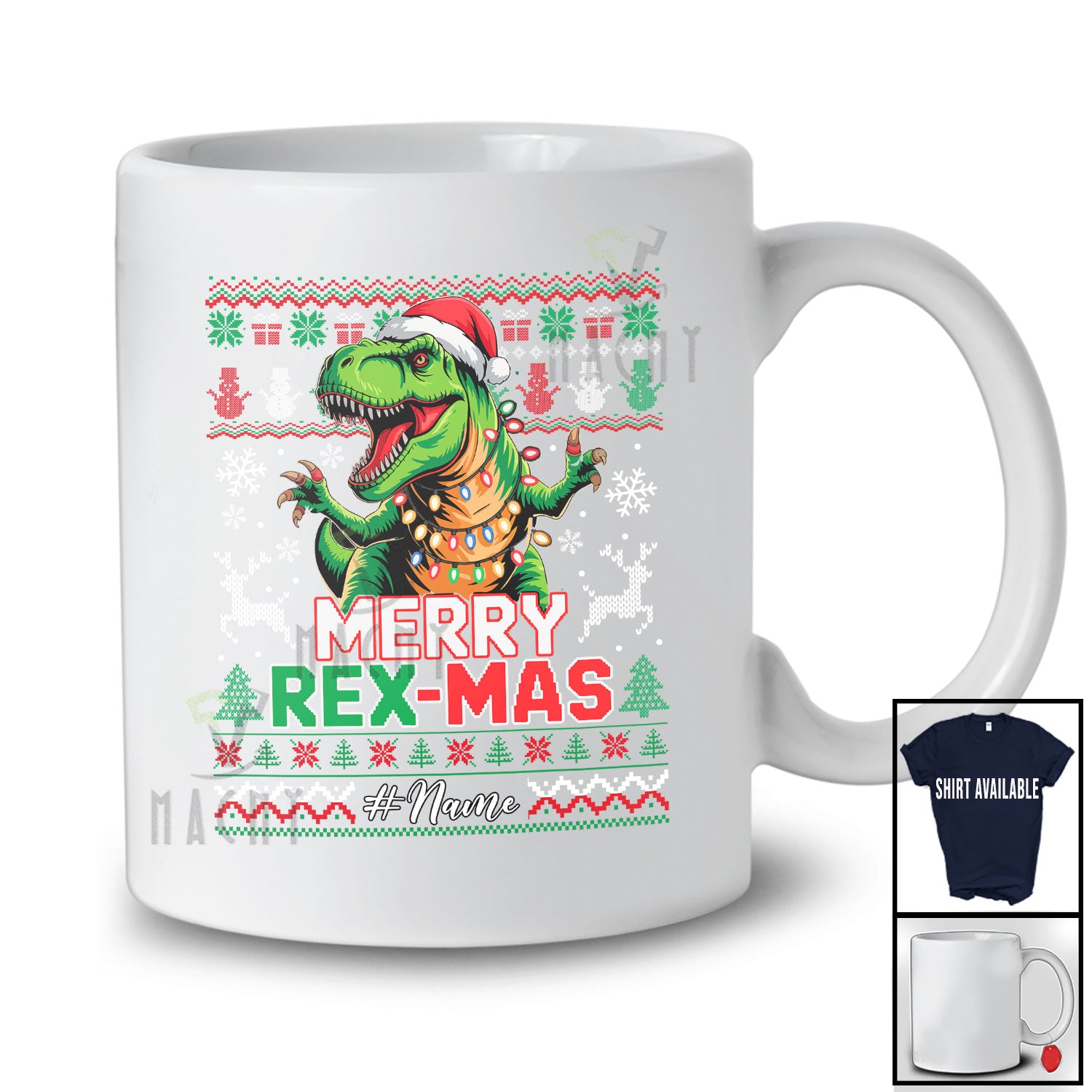 Personalized Custom Name Merry Rex-Max; Awesome Christmas Sweater Santa T-Rex Dinosaur T-Shirt. This cotton t-shirt is a durable staple product with a classic fit. One of the most popular items, it has a relaxed style made for everyday and casual wear.