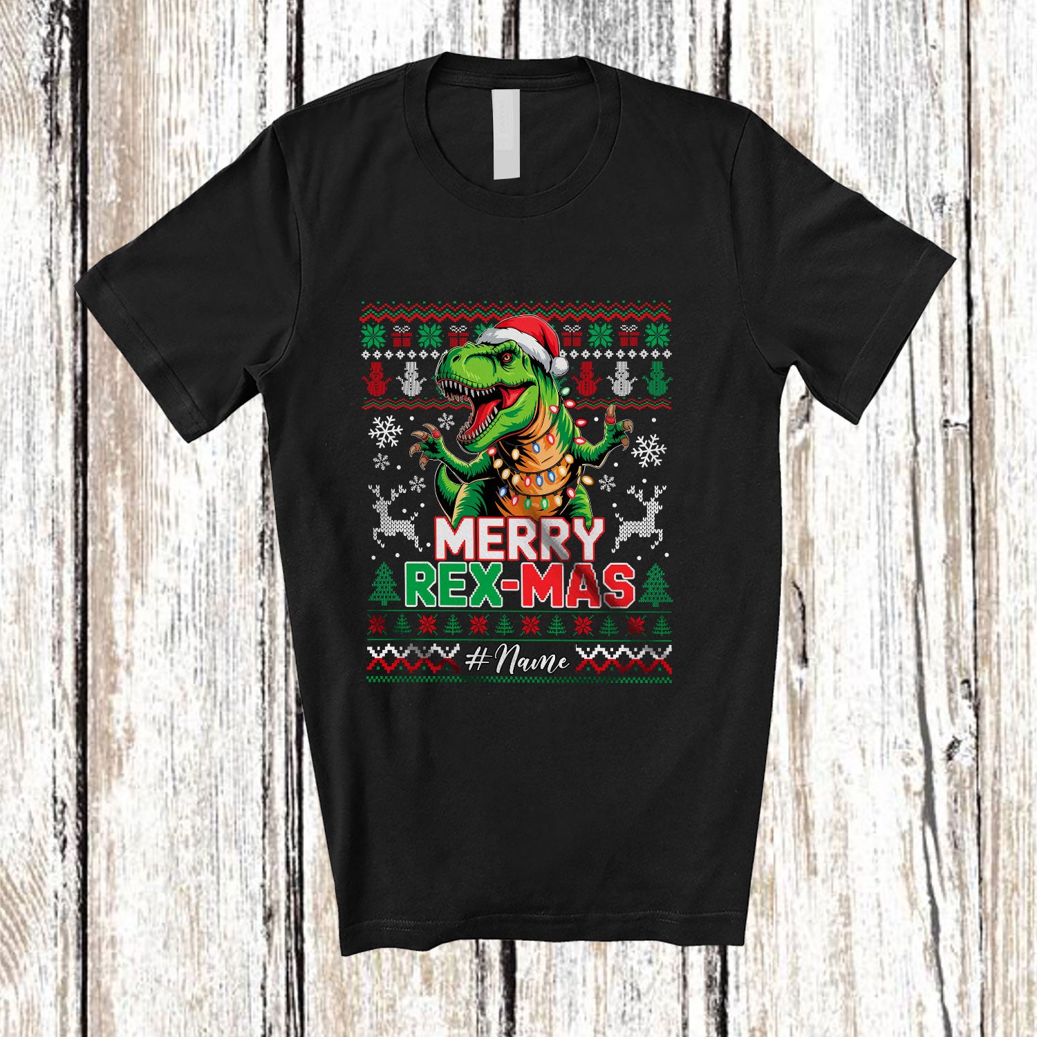 Personalized Custom Name Merry Rex-Max; Awesome Christmas Sweater Santa T-Rex Dinosaur T-Shirt