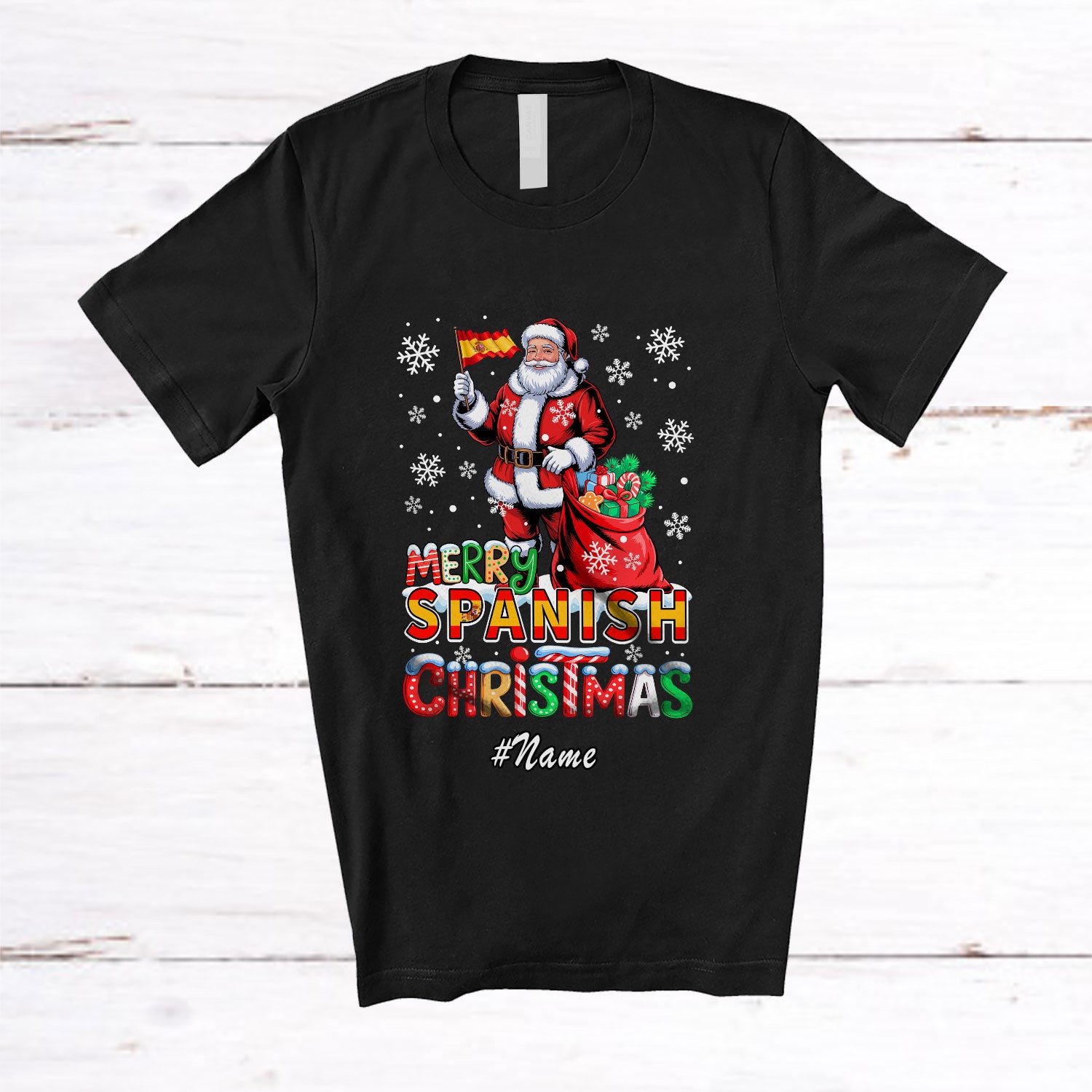 Personalized Custom Name Merry Spanish Christmas; Lovely Santa Spaniard Flag; Family T-Shirt
