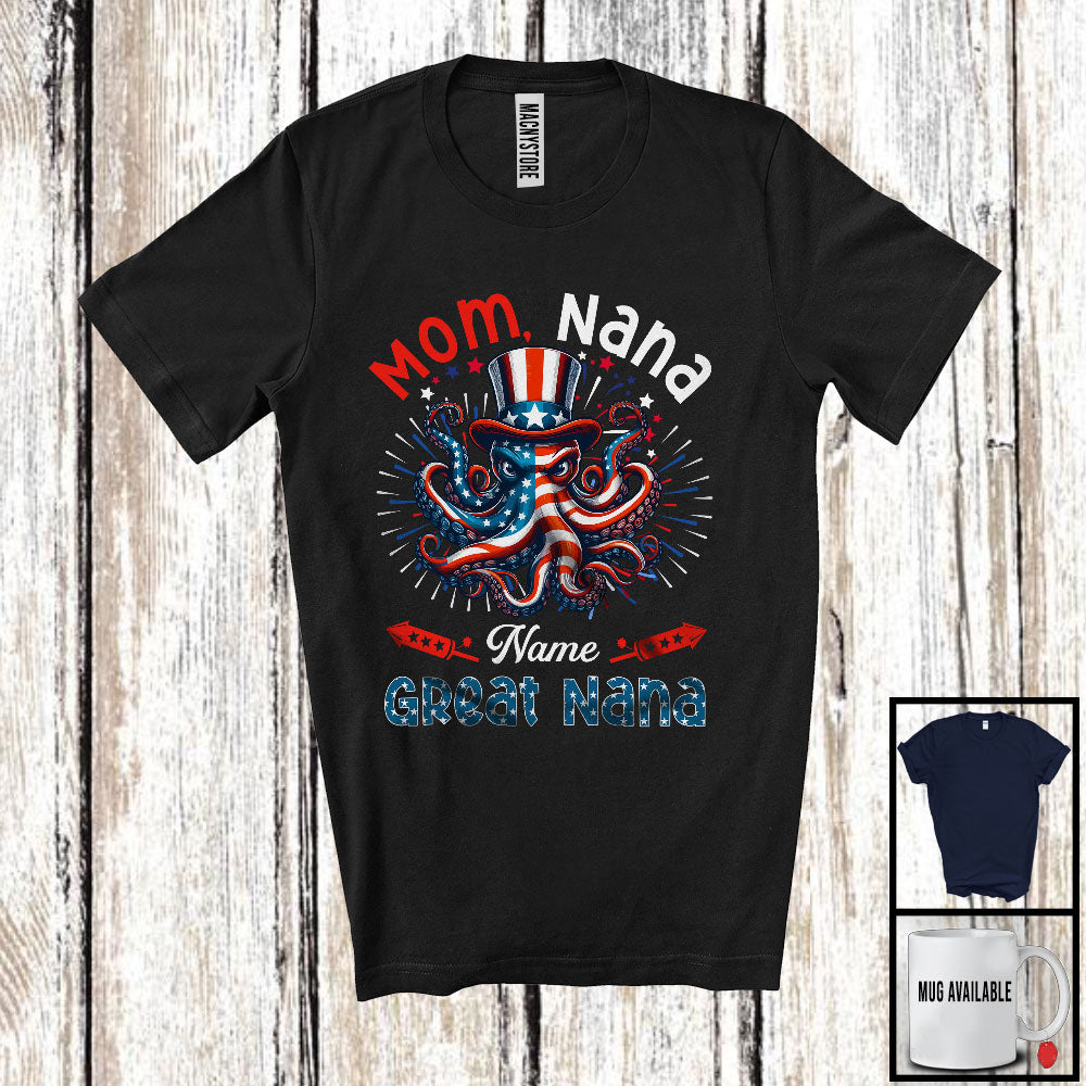 Personalized Custom Name Mom Nana Great Nana, Amazing 4th Of July Octopus Family Group T-Shirt