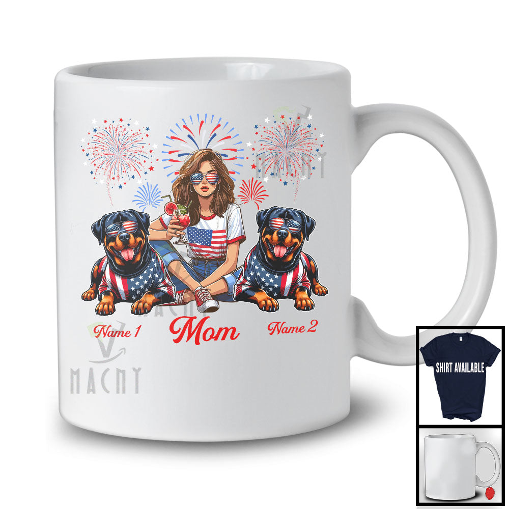 Personalized Custom Name Mom With Two Rottweiler, Amazing 4th Of July Fireworks Patriotic T-Shirt