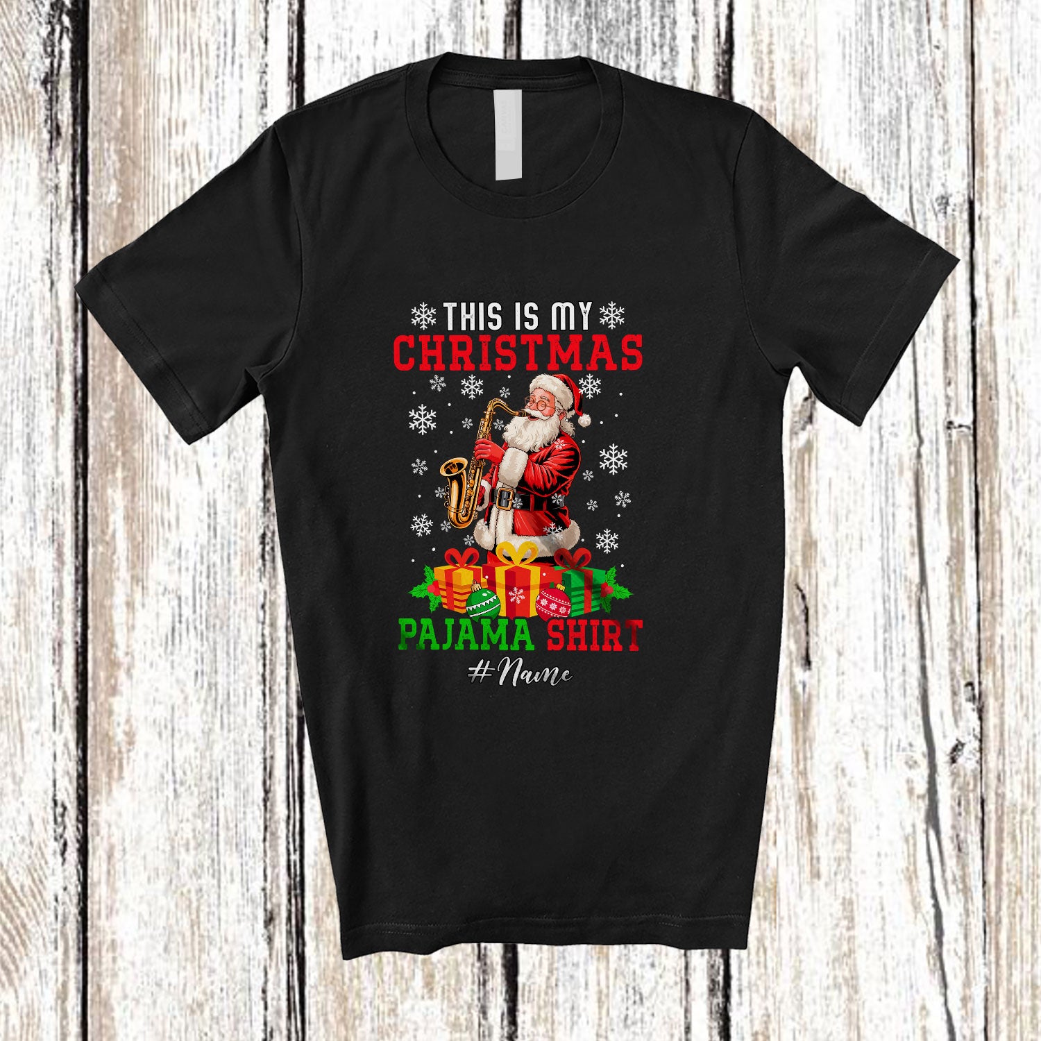 Personalized Custom Name My Christmas Pajama Shirt; Joyful Santa Saxophone Player Musician T-Shirt
